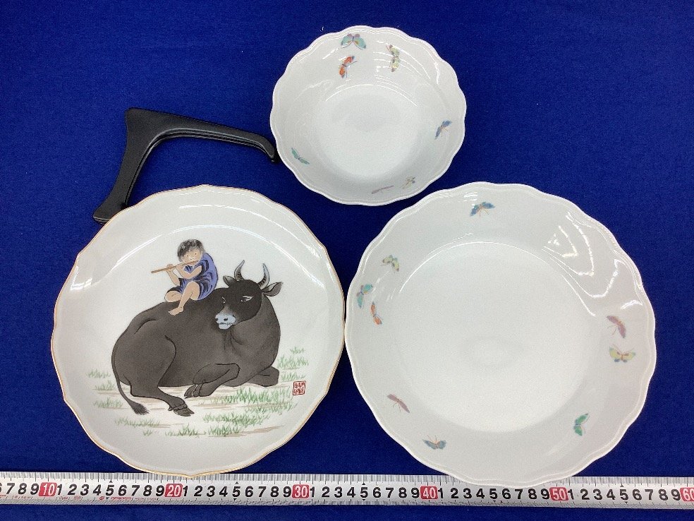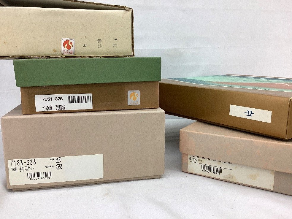 ・品名:陶器まとめ/蝶鉢/つゆ草取皿/手付バスケット/丑飾皿/箱入