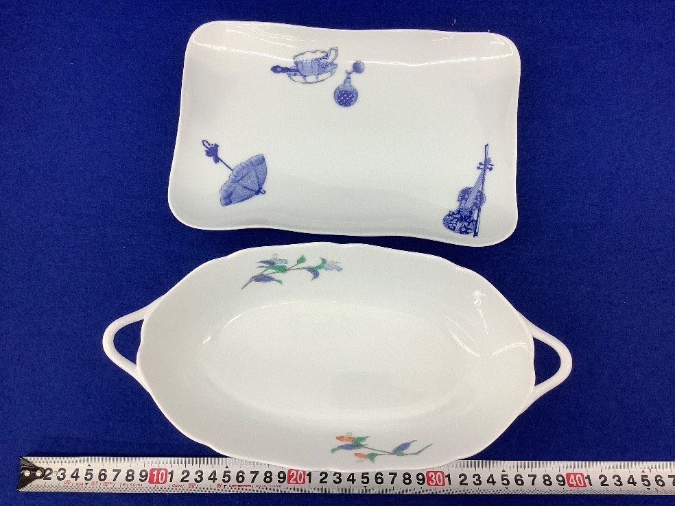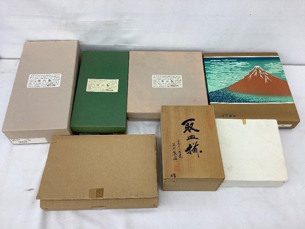 深川製磁 陶器まとめ/蝶鉢/つゆ草取皿/手付バスケット/丑飾皿/箱入 保管による汚れ有 皿立て付/ACB 未使用品