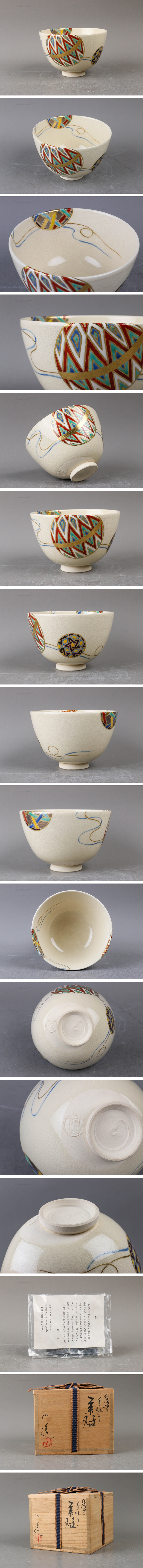 【SAG】通次阿山 仁清写手毬り茶碗 共箱 栞 茶道具 本物保証