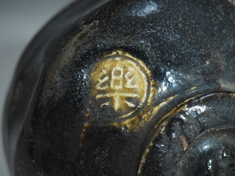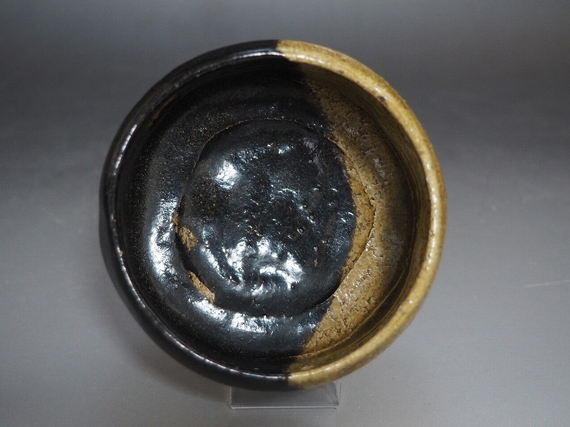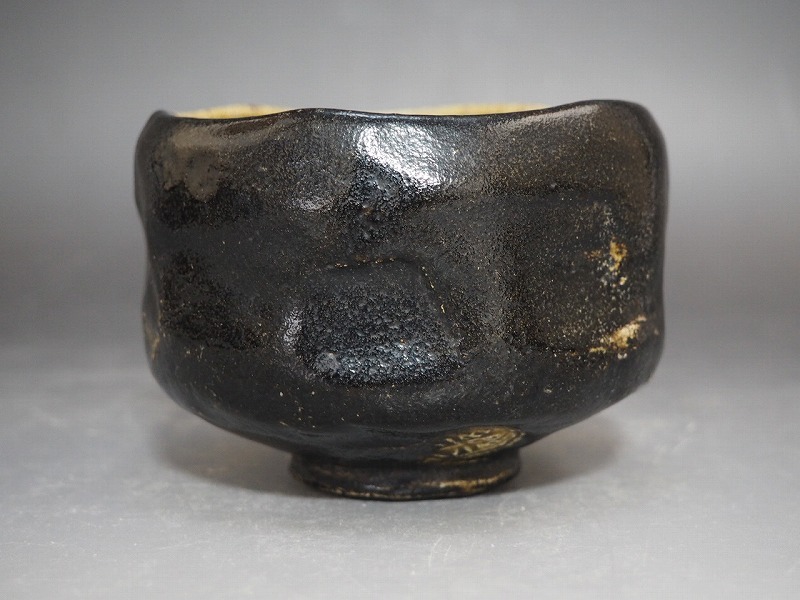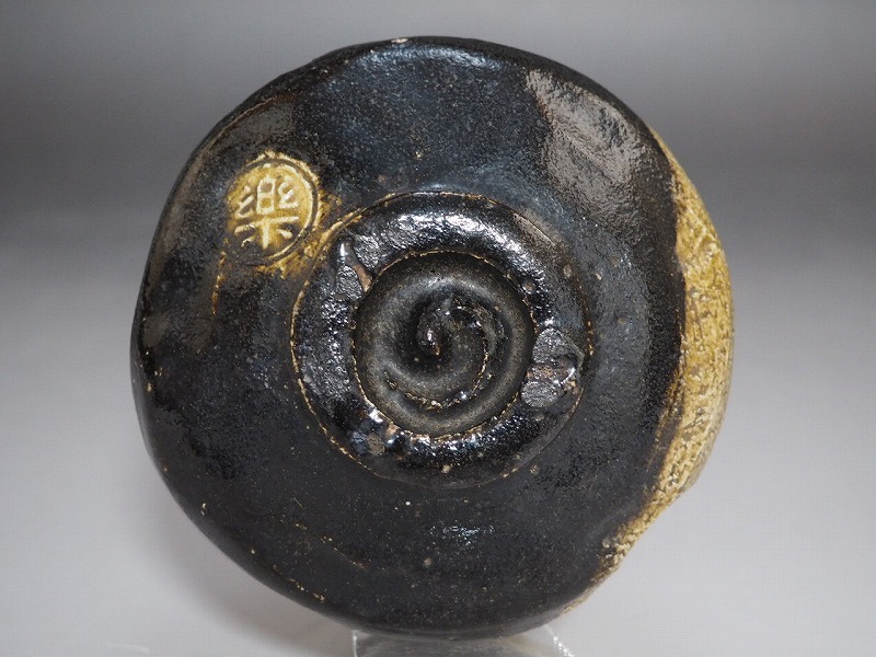 | A4566 楽印 掛分 楽茶碗 時代物 ☆ 旧家蔵出 古い 骨董 古美術 茶道具 茶器 茶の湯 黒楽 茶碗 楽茶碗 抹茶碗 楽焼 陶器 作家物 在銘 陶印 | ||