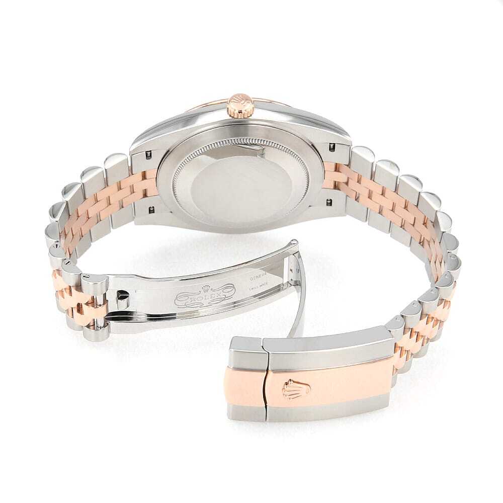 | モデル情報 | 1945年に誕生し、今やロレックスの顔とも言える"デイトジャスト"。ロレックスの三大機構(オイスターケース、パーペチュアル機構、デイトジャスト機構)を全て備えたモデルです。ダイアル色・ケース素材などの組み合わせは多岐に渡り、非常に多彩なバリエーションが存在するのが最大の魅力です。 |
