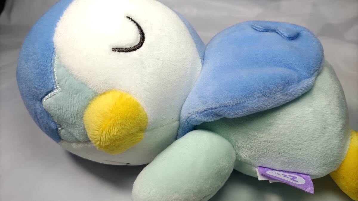 とてもかわいい寝姿のポッチャマのぬいぐるみです。