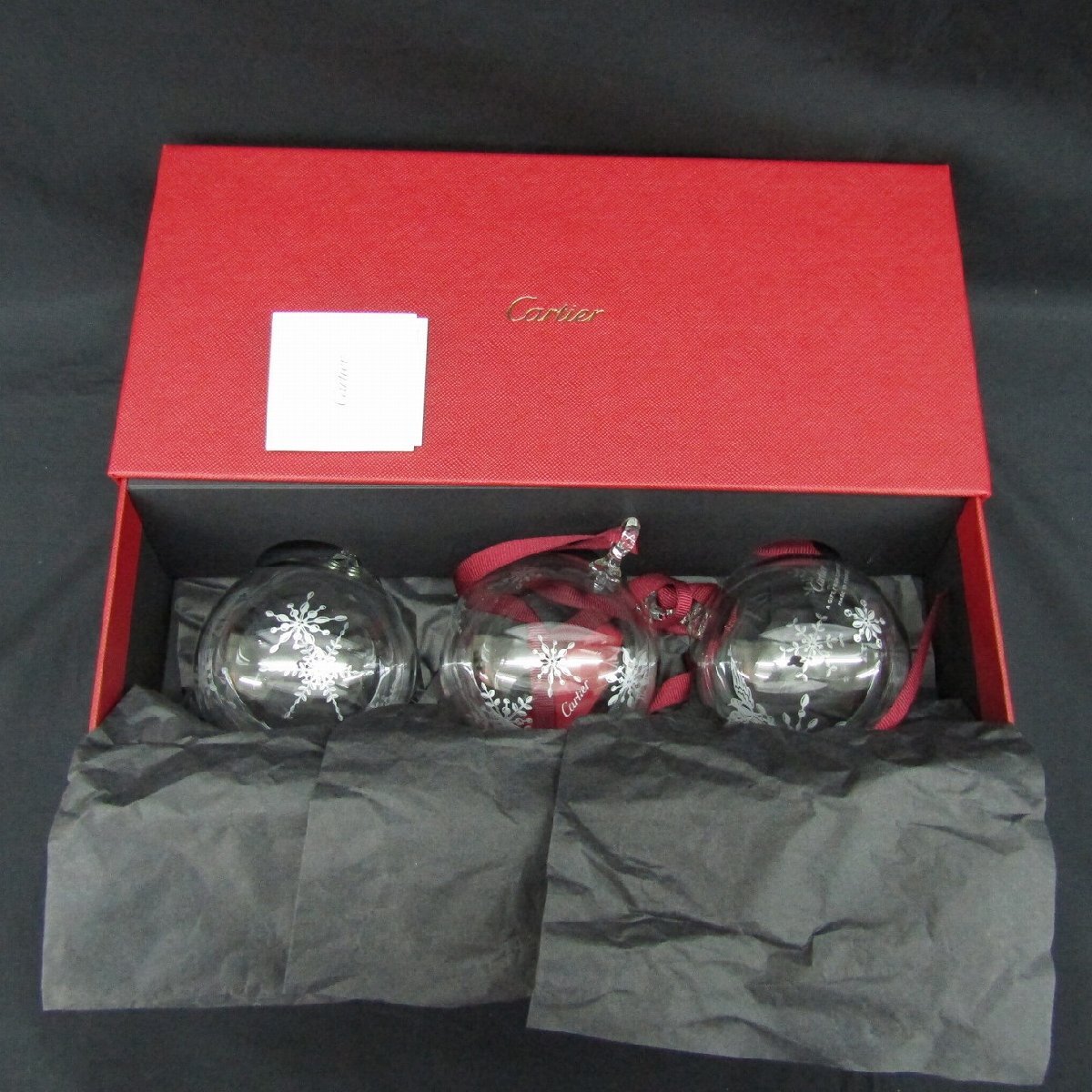 | 商品 | 【未使用/保管品】Cartier カルティエ オーナメント 球体 ガラス 雪結晶 烏 3点セット 箱付 11956551 1102 |
