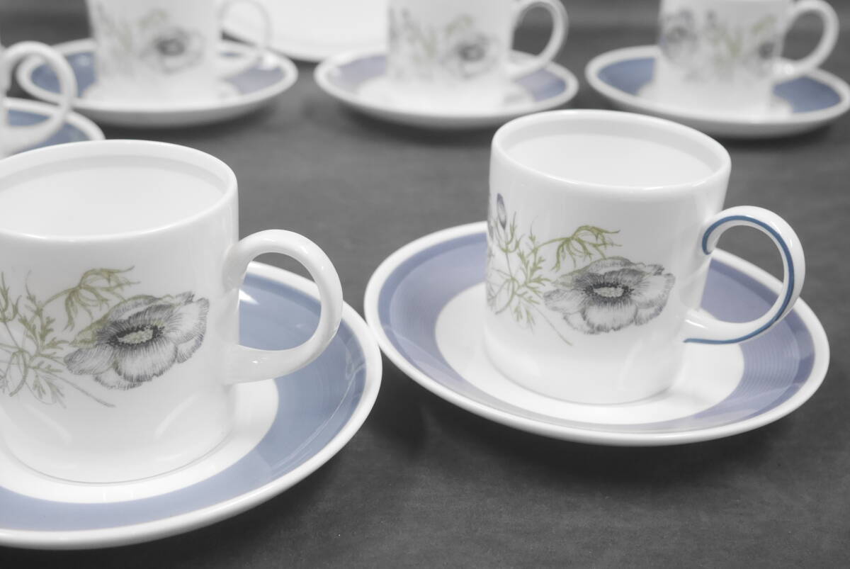 | 商品説明 | 画像に載っているのが全てです。 カップの高さ約6.6cm ソーサーの直径約14cm プレートのサイズ約27.5cm 取っ手に銭が入っているカップが2客、無地が5客あり、ロゴが違います。 線入りのカップ2客は未使用、他は目立たない小傷があるぐらいの使用品です。 箱はありません。 他にも出品していますのでよろしければご覧下さい。 |