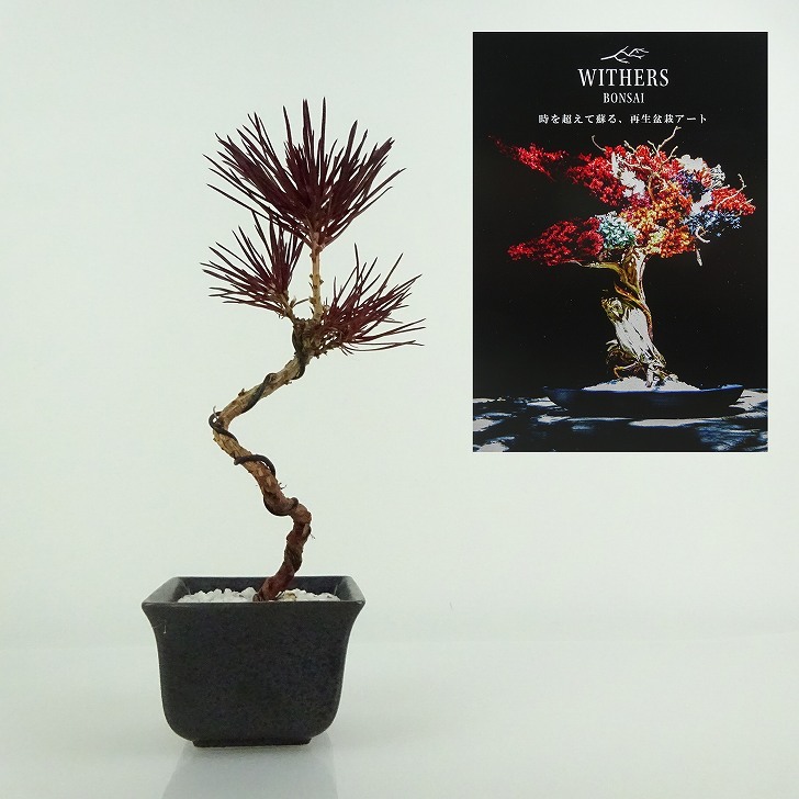 | 【withers bonsaiとは】 破棄されてしまう枯れた盆栽を回収し、その美しい樹形をそのままドライ化する事で、枯れない盆栽アートとして再生しました。 独自の保存技術により葉や花は乾燥させる事なく、自然に近い状態を保ったまま室内にて鑑賞頂けます。 |