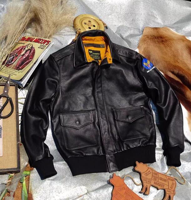 フライトジャケット レザージャケット カウハイド 牛革 ライダースジャケット 本革 革ジャン G-1 スカジャン メンズ A-2 S~4XL チョコ黒