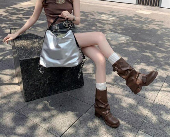 バックル 中筒ズボンチューブブーツ レトロ 西部カウボーイブーツ 【40】25cm ブラウン