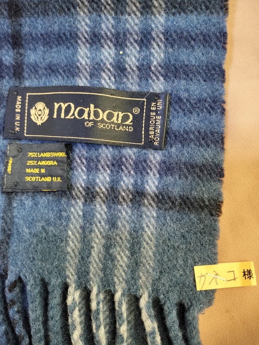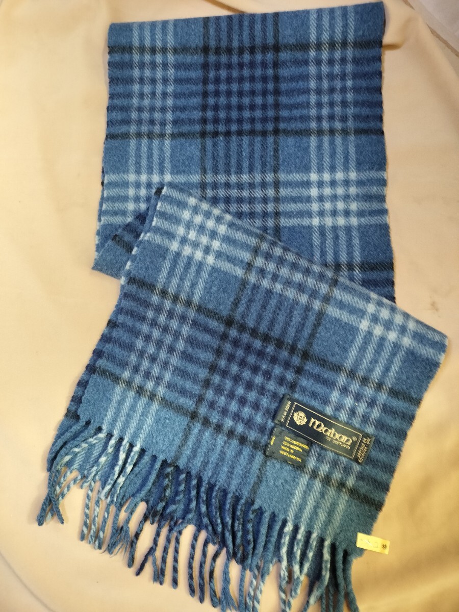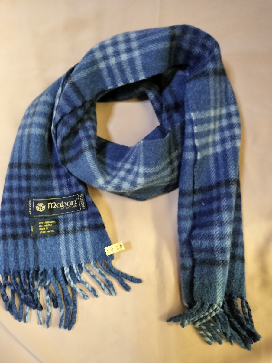 ブルー系統チェツク模様。柔らかな手触りの良い素材。使用感少なく破損、染み、毛玉など無く綺麗ですがUSDとして御理解の上NK,NRにてお願い致します