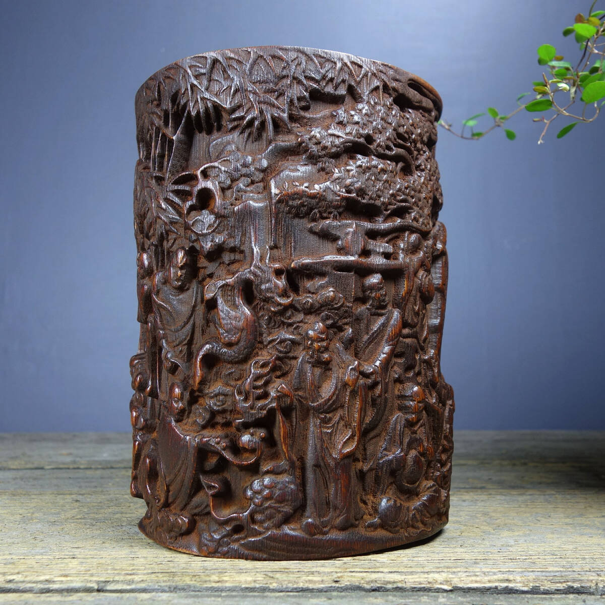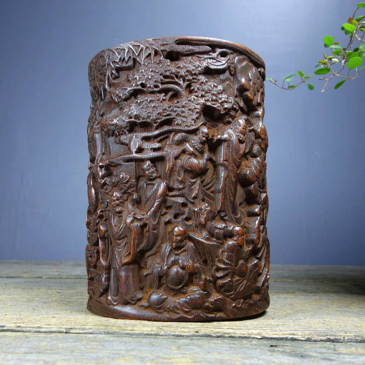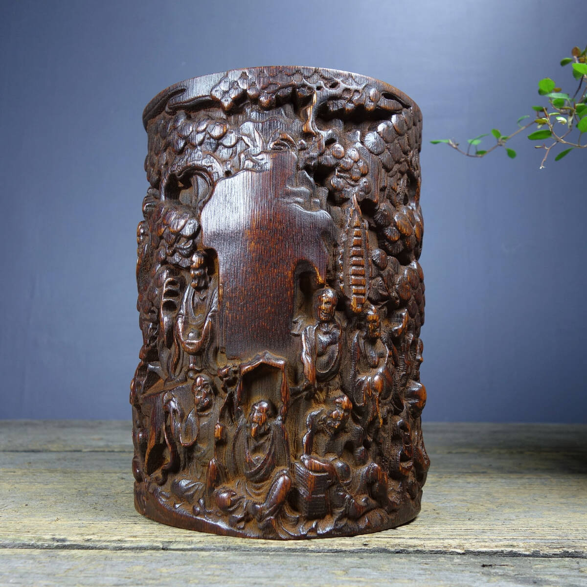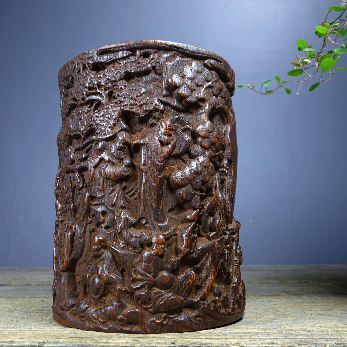 【超珍館蔵】花梨木製 細密彫 鏤空彫 十八羅漢 茶葉罐 文房具 書道品 置物 賞物 古賞物 古董品 古美術品 時代物 旧家蔵出 稀少珍蔵品