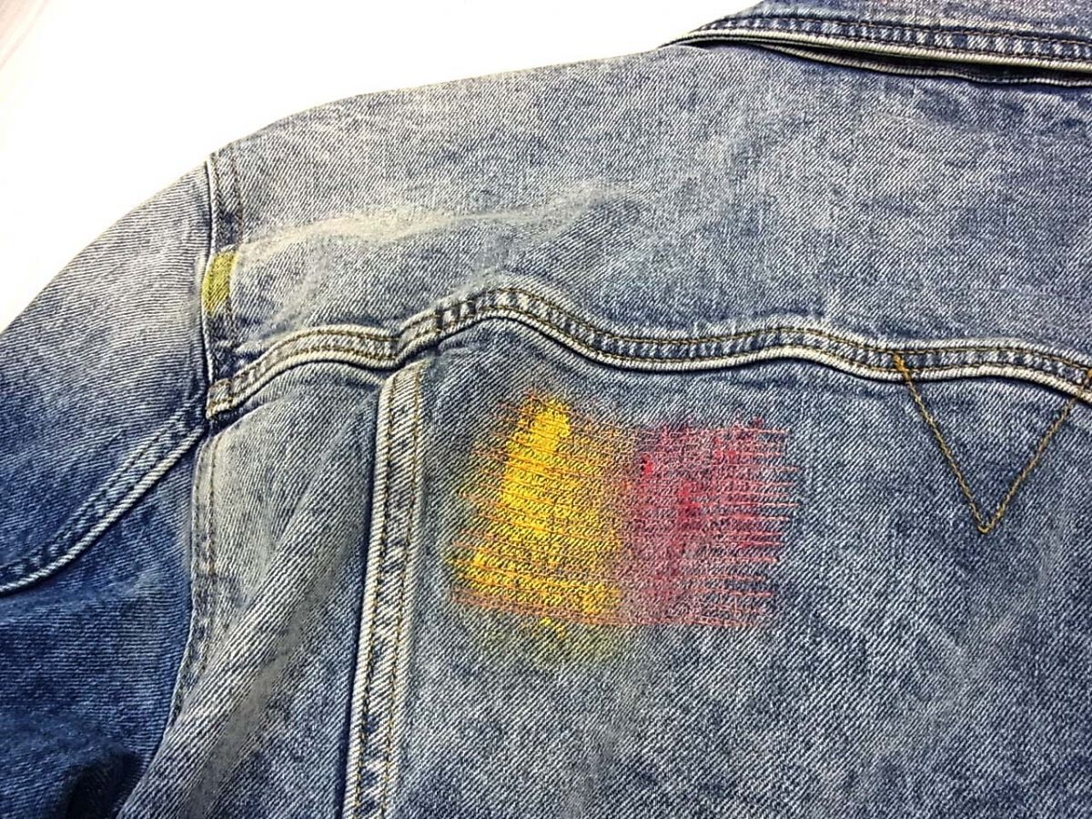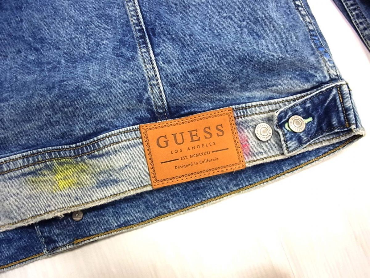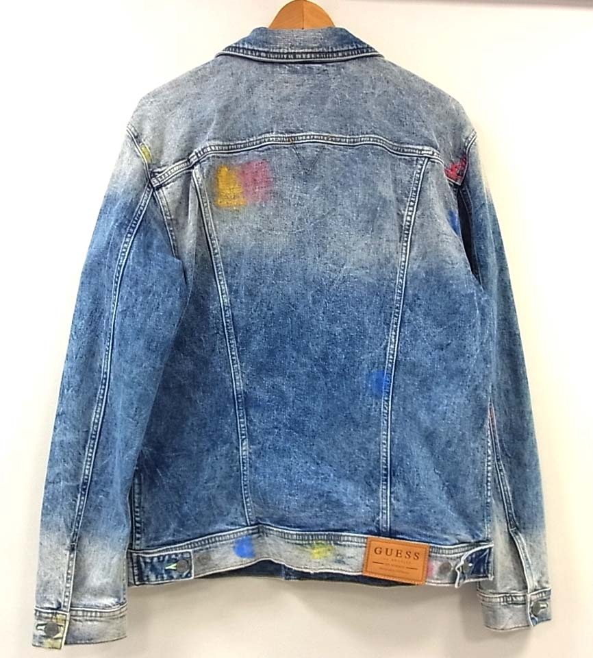 美品◆GUESS ゲス ジージャン デニムジャケット William Color Stitch Denim Jacket カラーペインティング 加工 メンズ