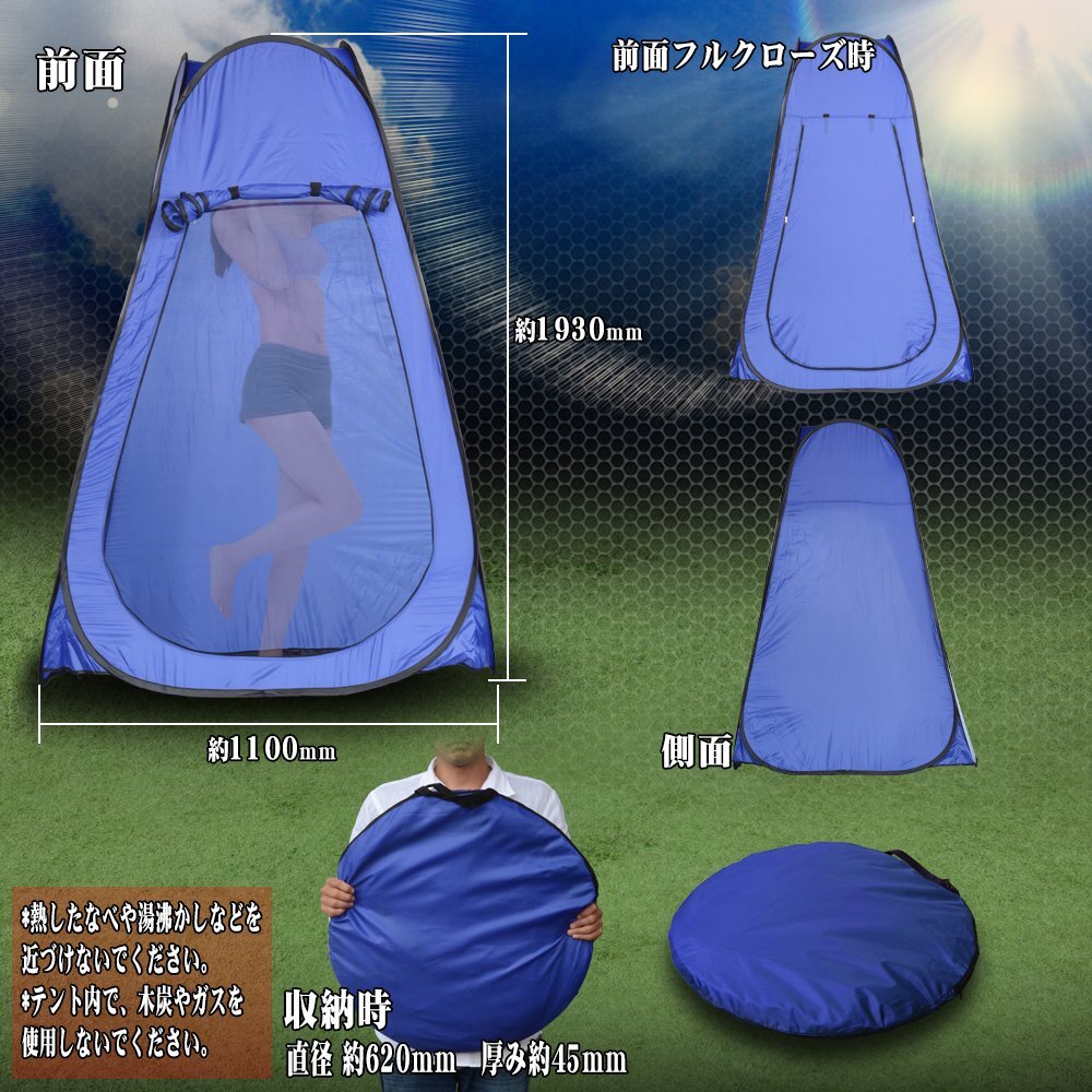 海水浴やアウトドアでの着替えに! 女性やお子様でも1人で簡単に設営できる キャンプや海や川などに行ったときに、車内での着替えは狭くて辛い! 中はゆったり広々で大人でも楽に着替えができます! 災害時には中に簡易トイレなどに設置としてトイレとして使うこともできます!