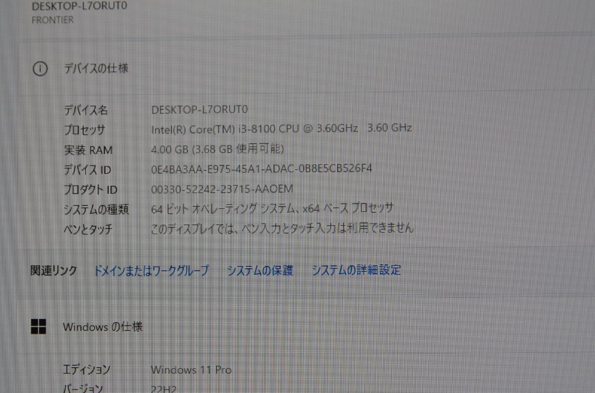 動作していたフロンティアのパソコンよりWin11起動を確認した後取り外したものです。