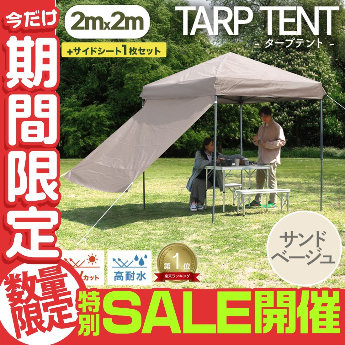 【数量限定セール】タープテント サイドシート1枚セット (サンドべージュ) 2m×2m ワンタッチ サンシェード テント 耐水 日よけ アウトドア