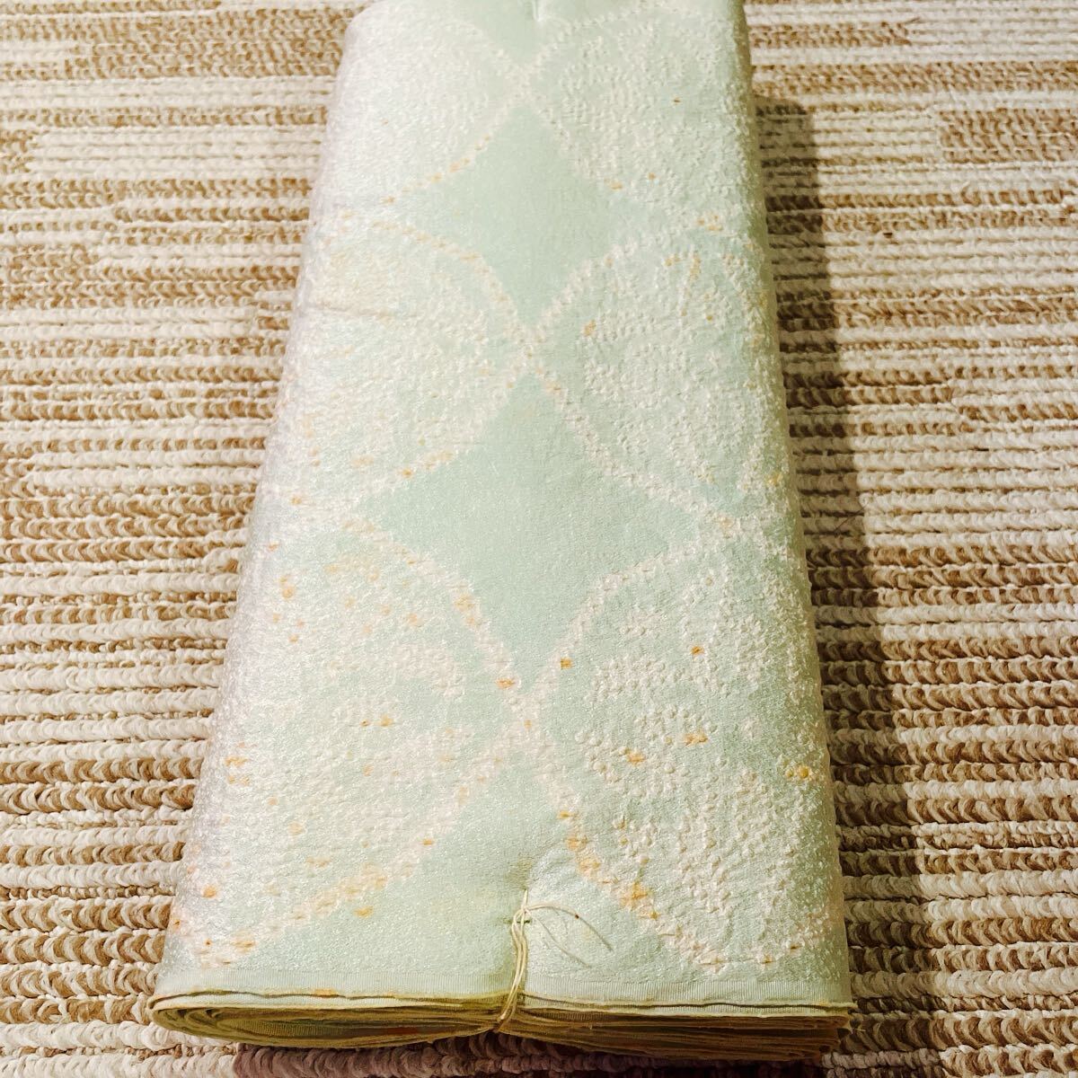 綸子の絞り、薄緑地の上品な雰囲気の商品です。