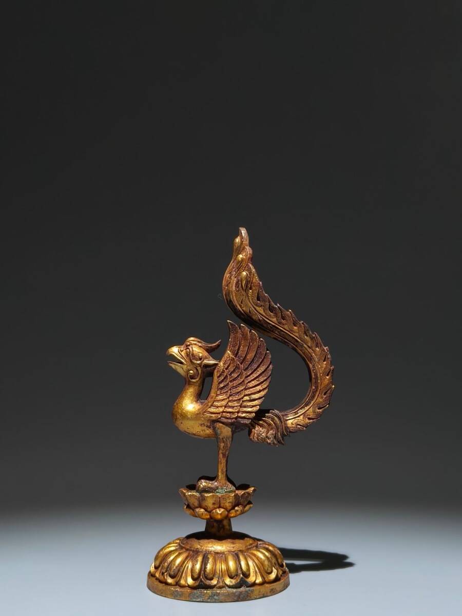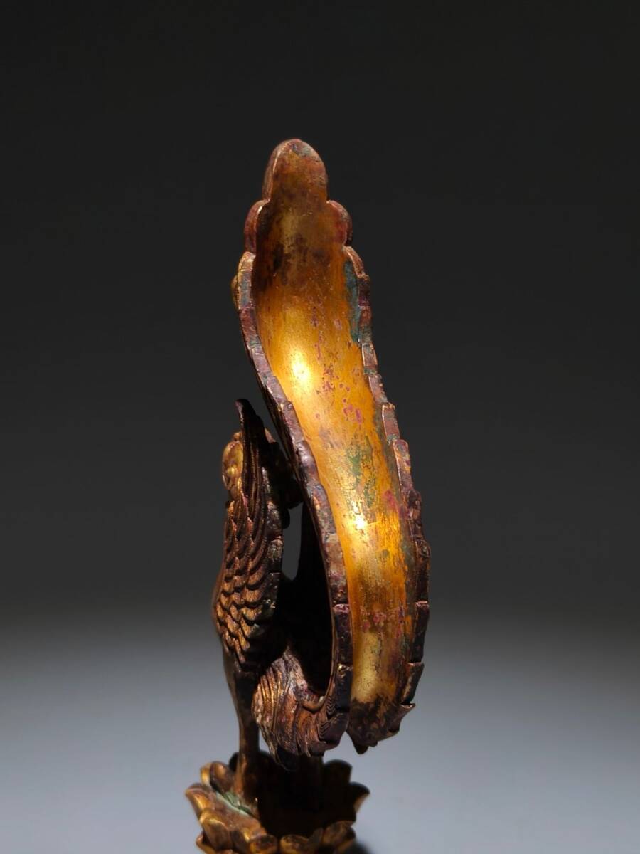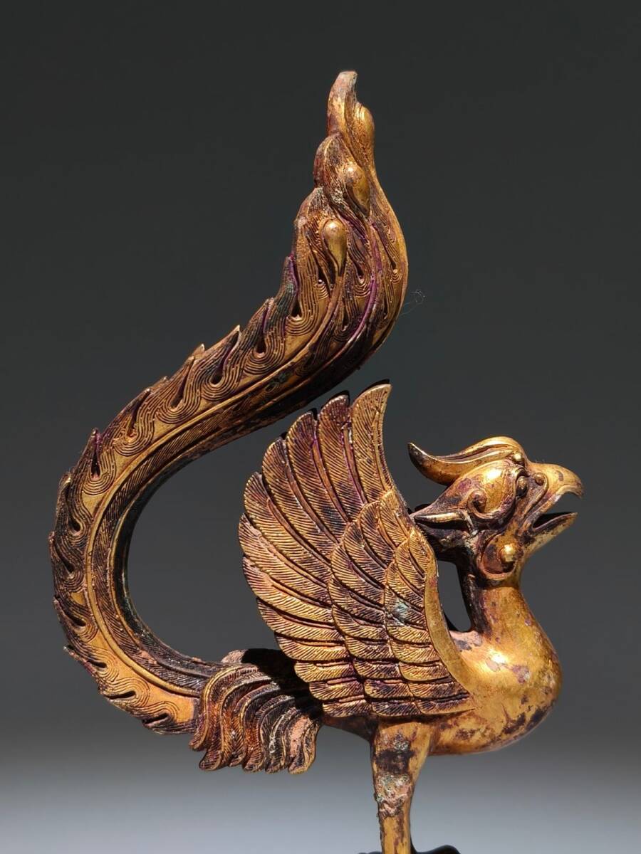 【永】唐代時期 青銅器 塗金 鳳鳥形 極細工 古銅彫 置物擺件 古美術品 古董品 収集 骨董品 旧家蔵出 中国唐物 A18