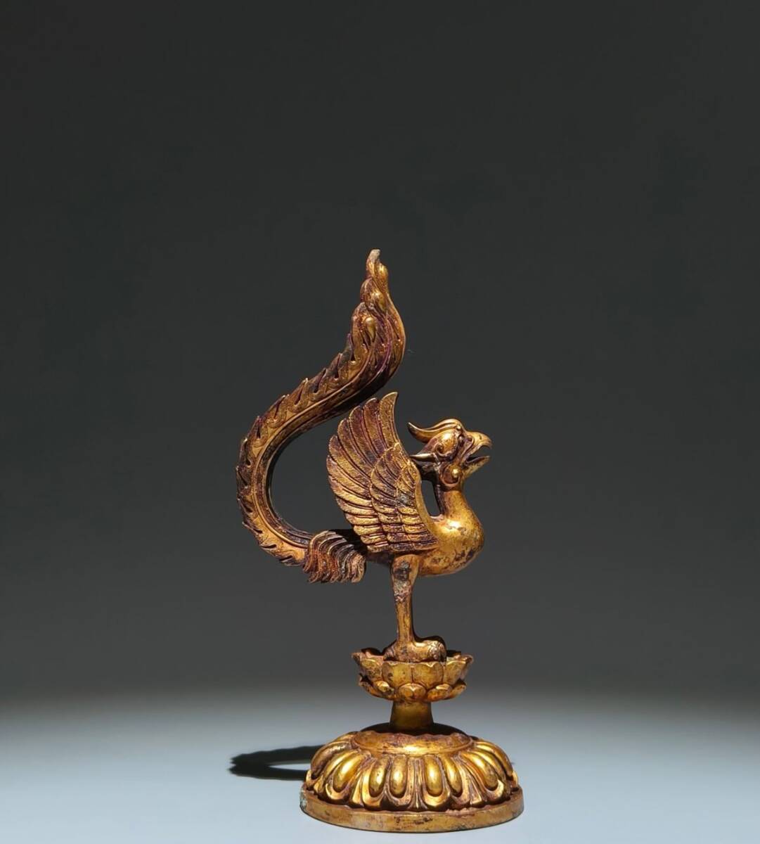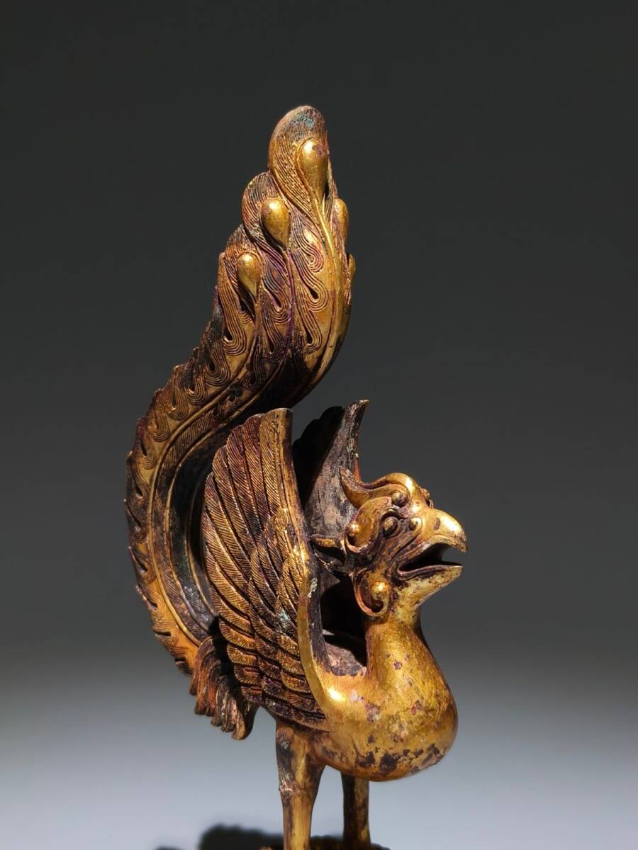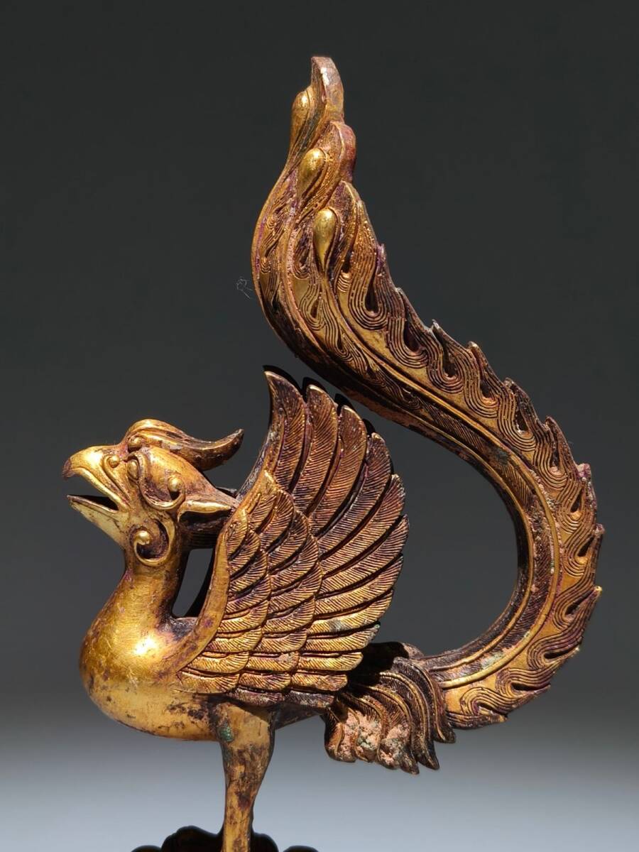 【永】唐代時期 青銅器 塗金 鳳鳥形 極細工 古銅彫 置物擺件 古美術品 古董品 収集 骨董品 旧家蔵出 中国唐物 A18
