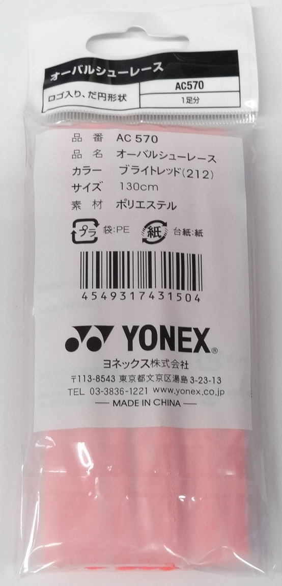 ヨネックス オーバルシューレース【AC570】  ブライトレッド 130㎝