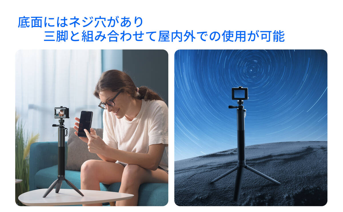などのデバイスに対応するだけでなく、 プロの写真家でもアマチュアでも、この自撮り棒を使えば簡単に素晴らしい写真が撮れます。