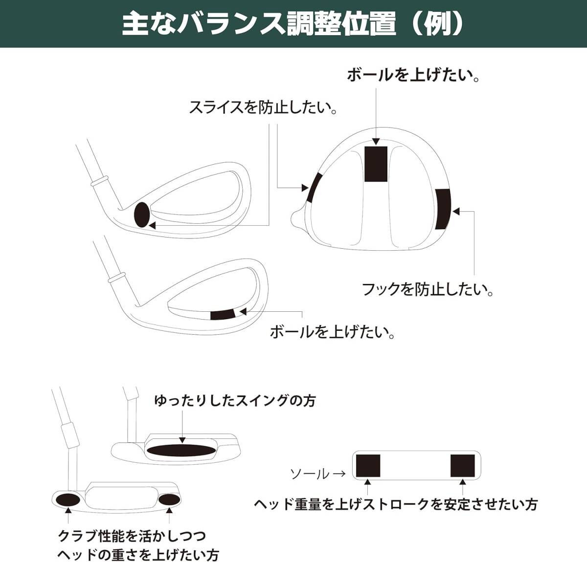 ウエイトを活用して、クラブのチューンアップにチャレンジ! 剥がして貼るだけの簡単ヘッドバランス調整用ウエイトバランス。柔らかくなめしやすいので、きっちり密着します。