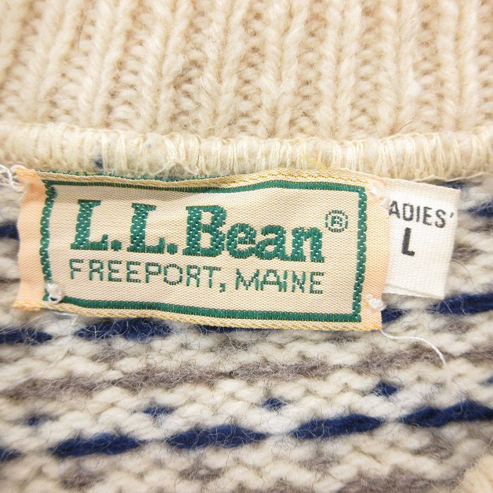 【商品名】 古着 エルエルビーン 長袖 セーター レディース 80年代 80s バーズアイ クルーネック 生成り