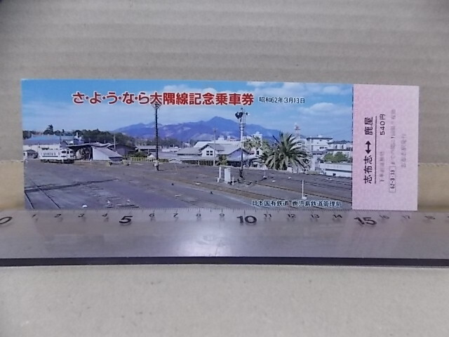 さようなら 国鉄 大隅線 昭和62年3月 記念乗車券★志布志⇔鹿屋★鹿児島鉄道管理局 日本国有鉄道★自宅長期保管品③