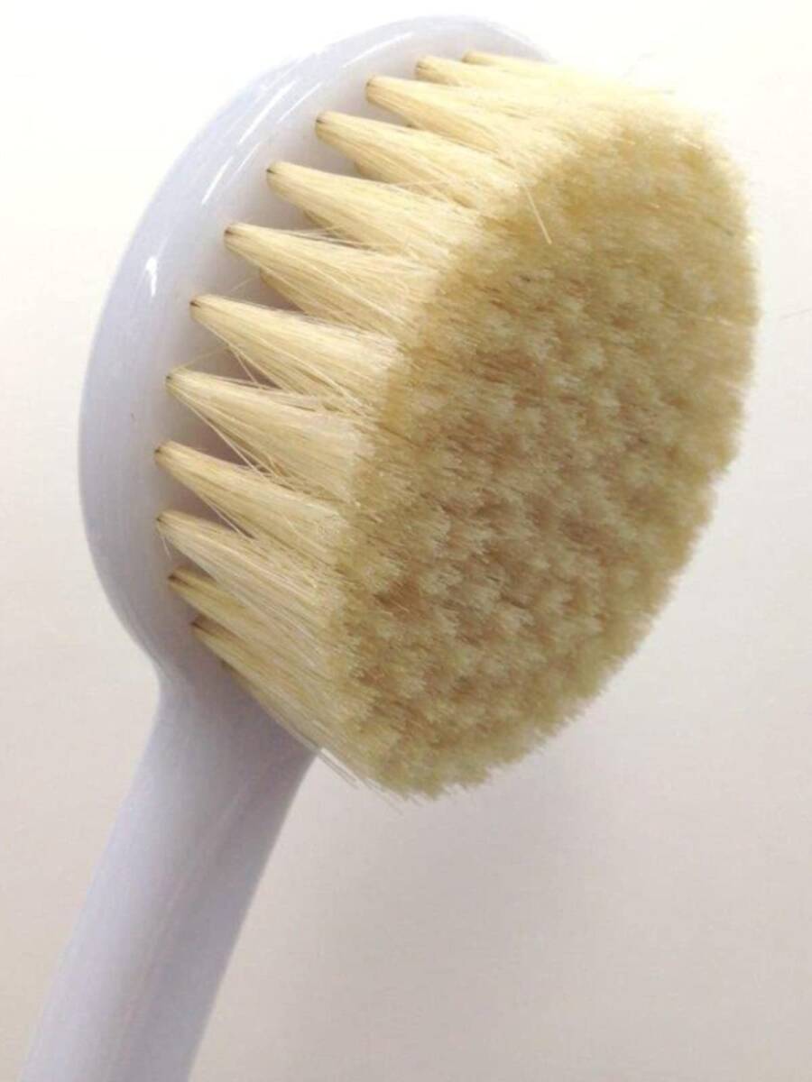 商品紹介 ●使いやすさにこだわって仕上げた肌に気持ちいいブラシ ●丸みのついた柄で、手の届きにくい背中もラクに洗える ●ブラシは豚毛を使用 より ●使いやすさにこだわって仕上げた肌に気持ちいいブラシ ●丸みのついた柄で、手の届きにくい背中もラクに洗える ●ブラシは豚毛を使用