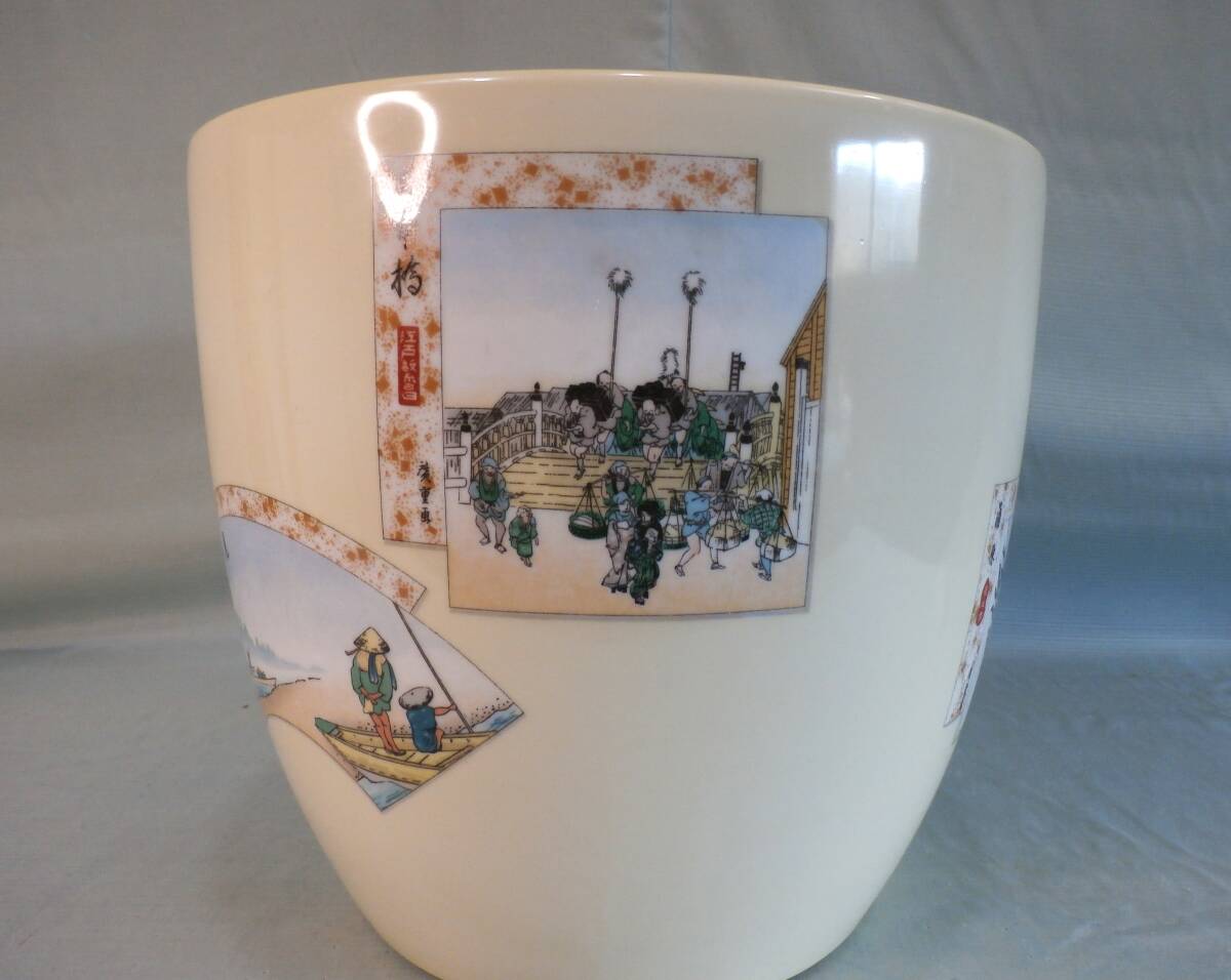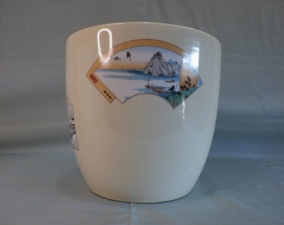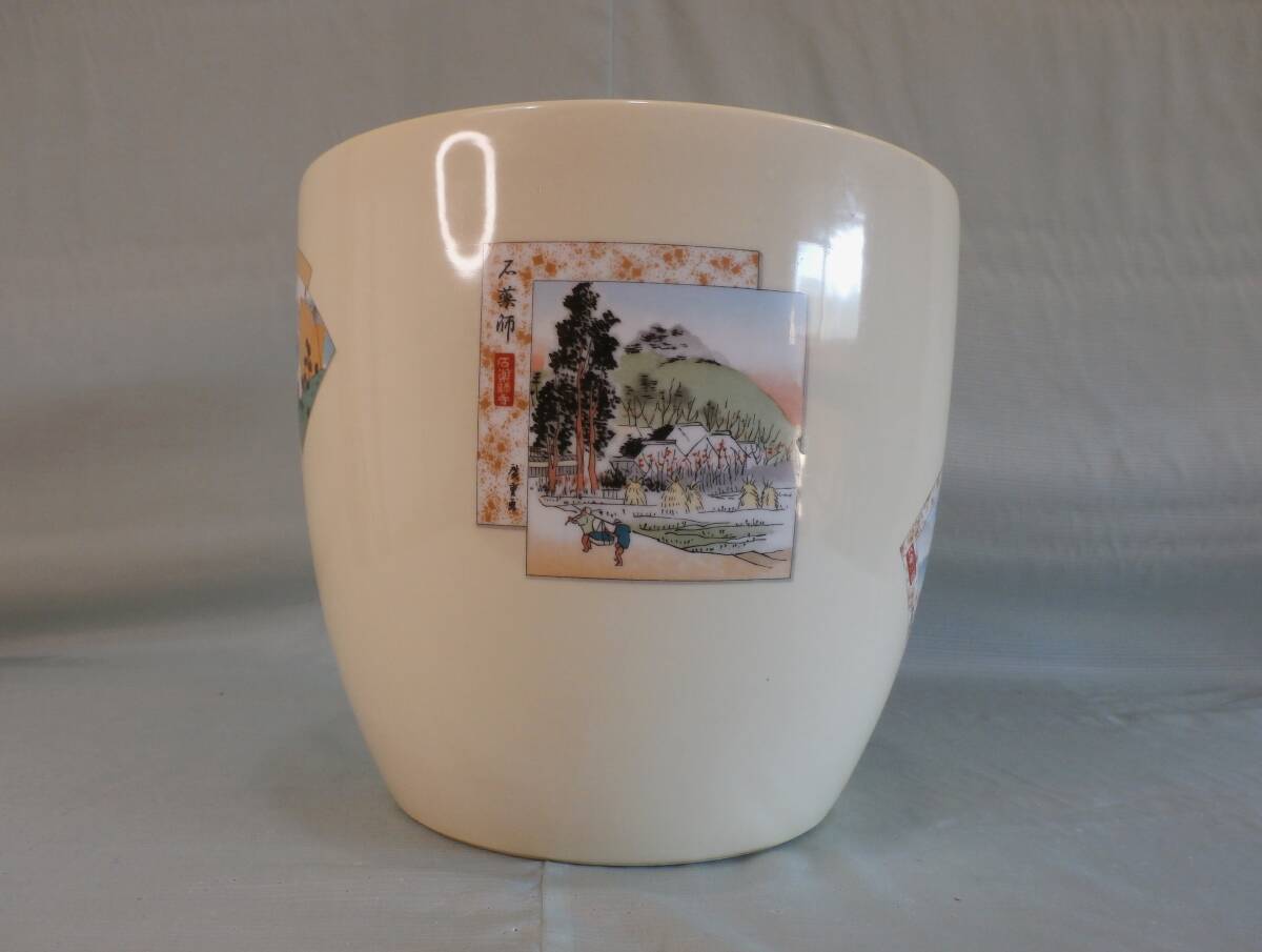 ノリタケ浮世絵柄火鉢 東海道宿場画 金魚鉢 日陶 火鉢 陶印入り W メダカ鉢 鉢カバー スイレン鉢 ビオトープ USED出品