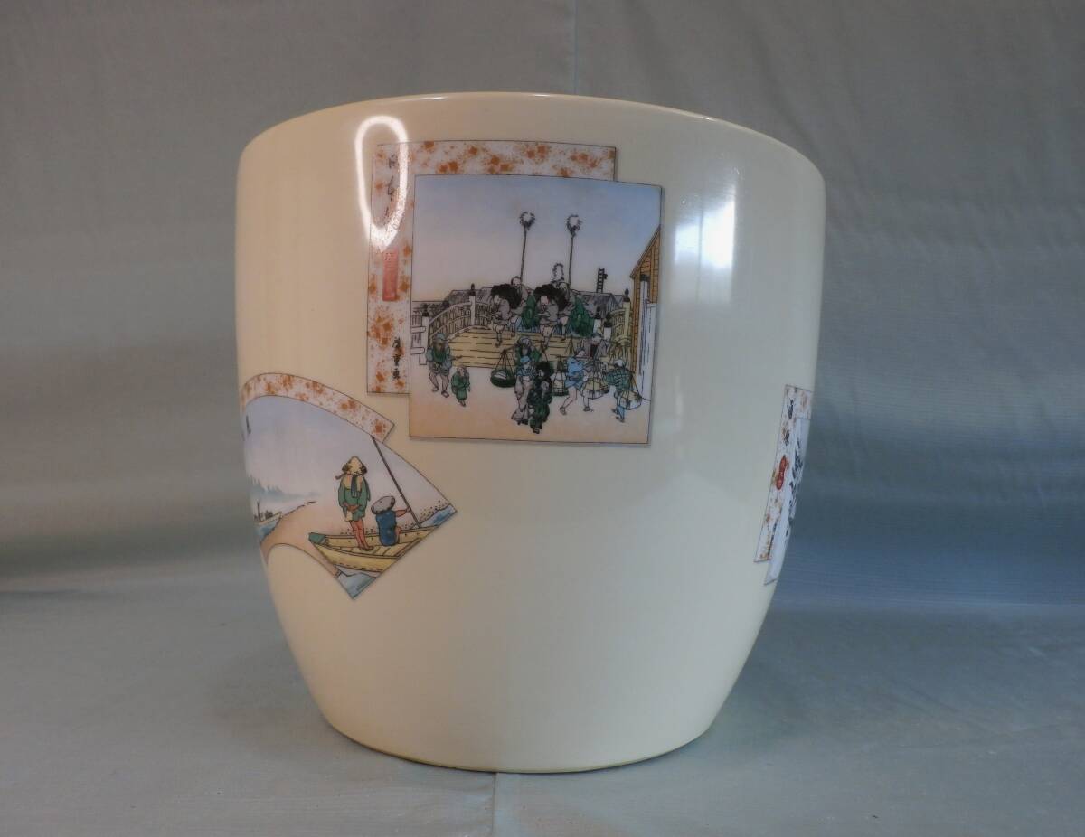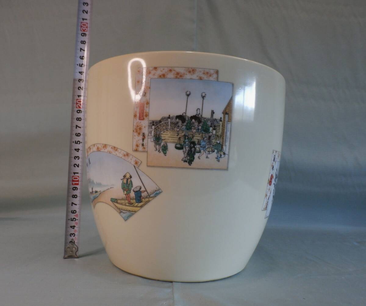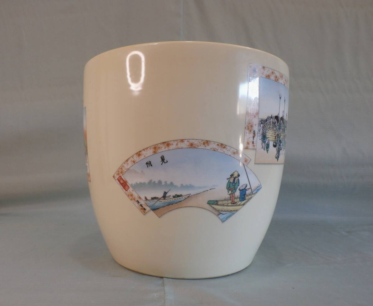 ノリタケ浮世絵柄火鉢 東海道宿場画 金魚鉢 日陶 火鉢 陶印入り W メダカ鉢 鉢カバー スイレン鉢 ビオトープ USED出品