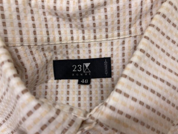 23区HOMME レトロ トラッド モード 古着 小紋柄 総柄 ボタンダウン 半袖シャツ メンズ 48 ベージュ系 です。