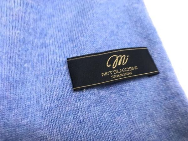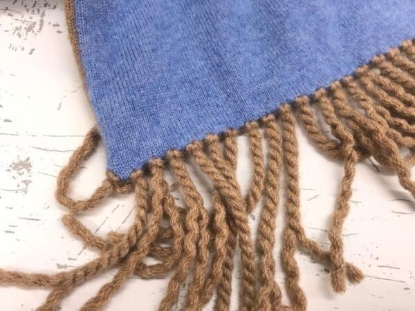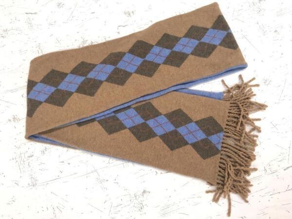 三越 MITSUKOSHI オールド トラッド レトロ アーガイル × 無地 定番 フリンジ ニット マフラー ベージュ/青 レディース