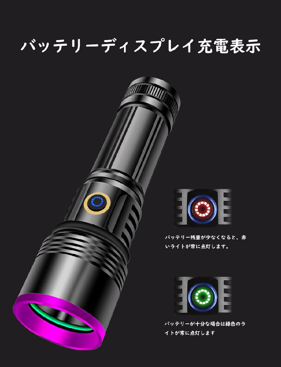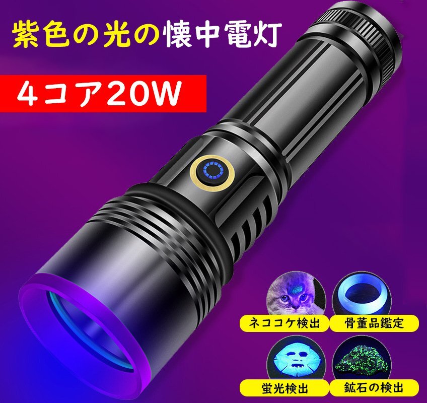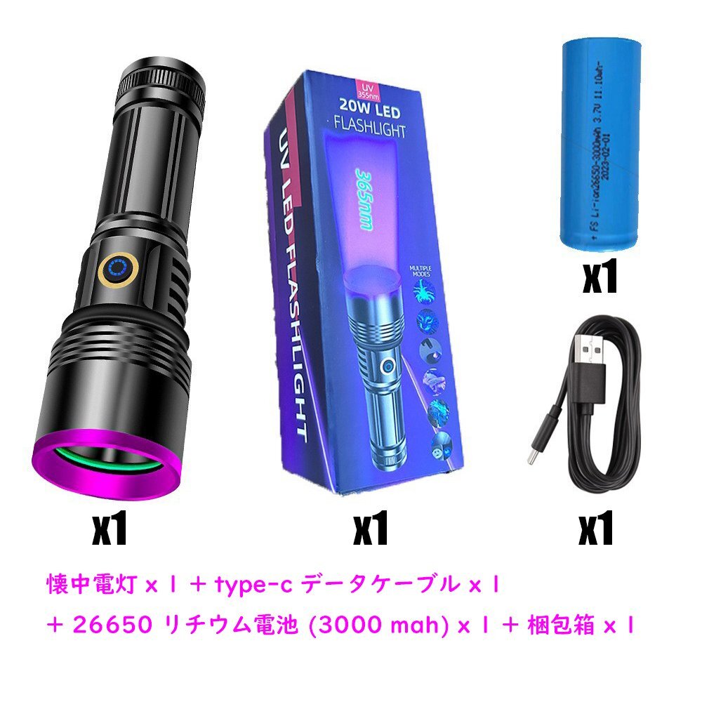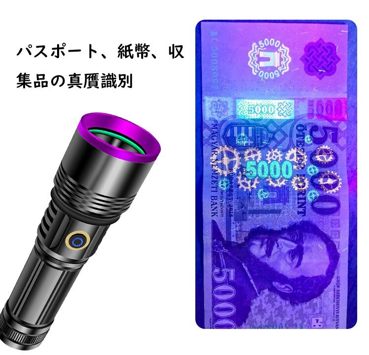 紫外線ライト ブラックライト アニサキスライト 26650電池付 365nm 強力 3000mah大容量 USB充電式 防水 鑑定 釣り真贋 鉱物用 hw788