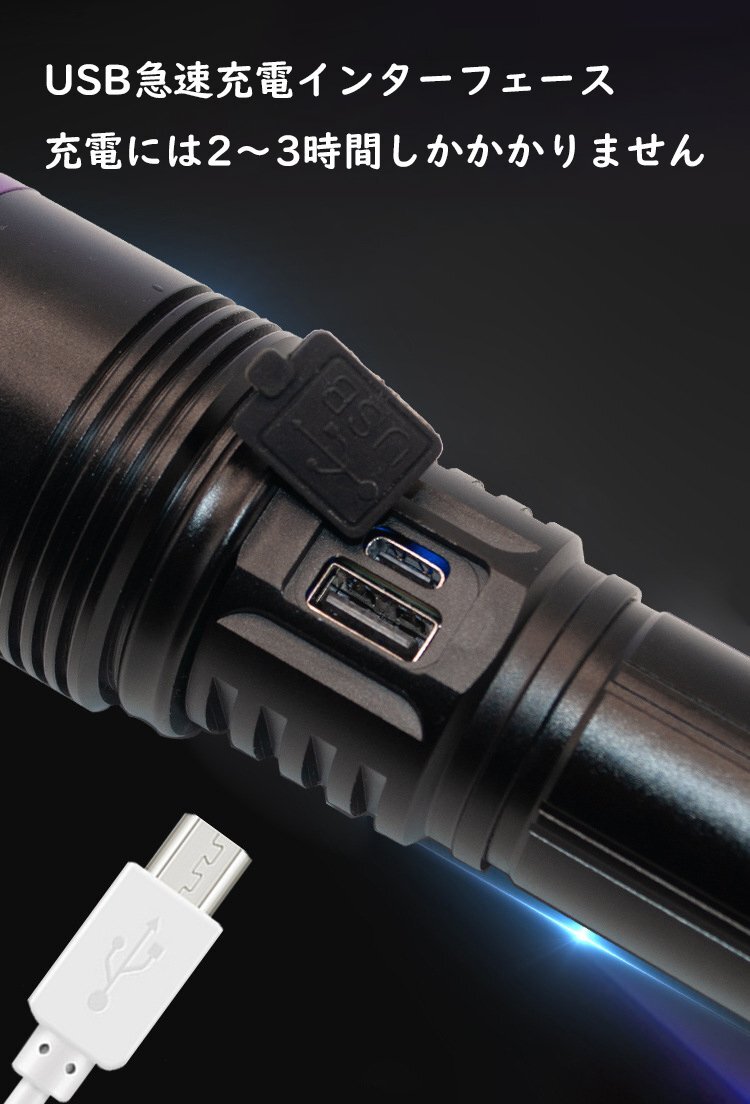 【含まれています】:懐中電灯 x 1 + type-c データケーブル x 1 + 26650 リチウム電池 (3000 mah) x 1 + 梱包箱 x 1