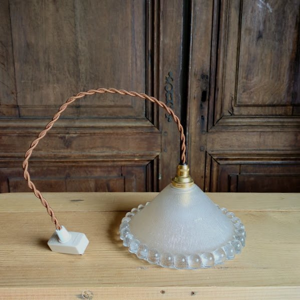 気泡ガラス ペンダントライト【44-64-C】フランスアンティーク 天井照明 コード色変更可能 吊り下げ照明