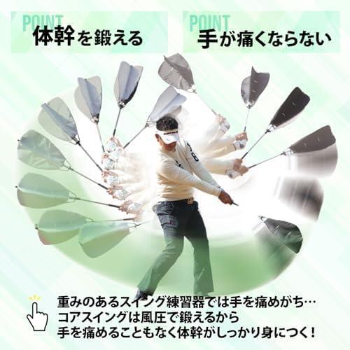 【空気抵抗を感じながら安定したスイング軸を鍛える素振り用練習器具】 初心者や女性の方でも振れる、ほどよい抵抗感、スイング軸の安定とスクエアなインパクトが自然に身に付くことによって、ミート率、つかまり、ヘッドスピードUP等が期待でき、それらが総合的に作用して飛距離アップへと導きます