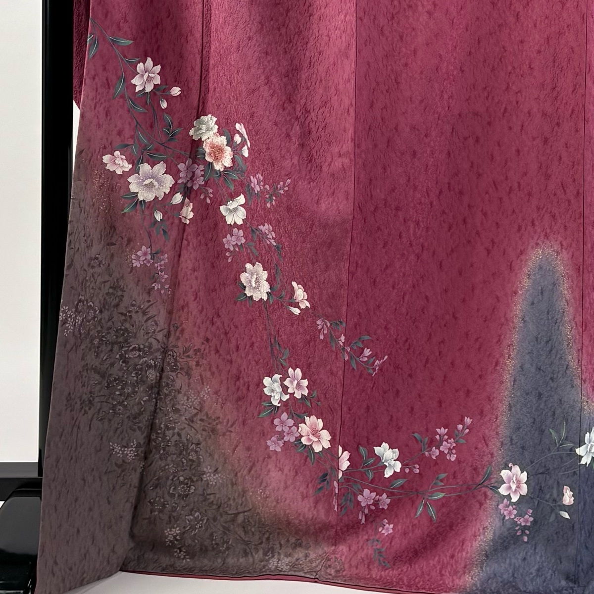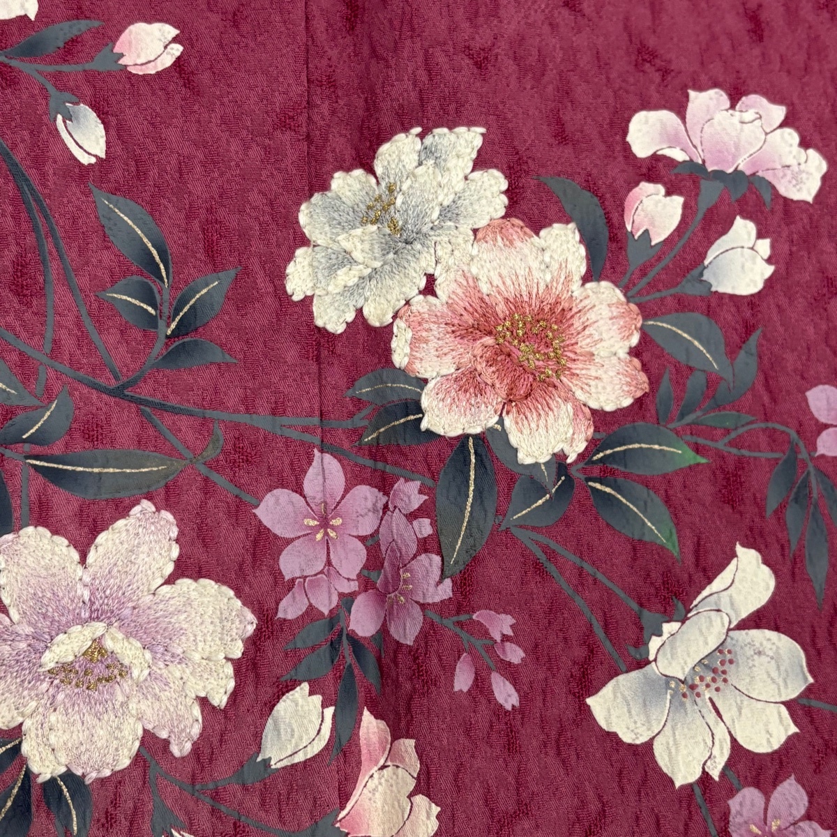| 振袖 美品 名品 やまと 草花 金彩 刺繍 赤紫 袷 身丈169.5 裄丈69 L 正絹 【中古】 |
