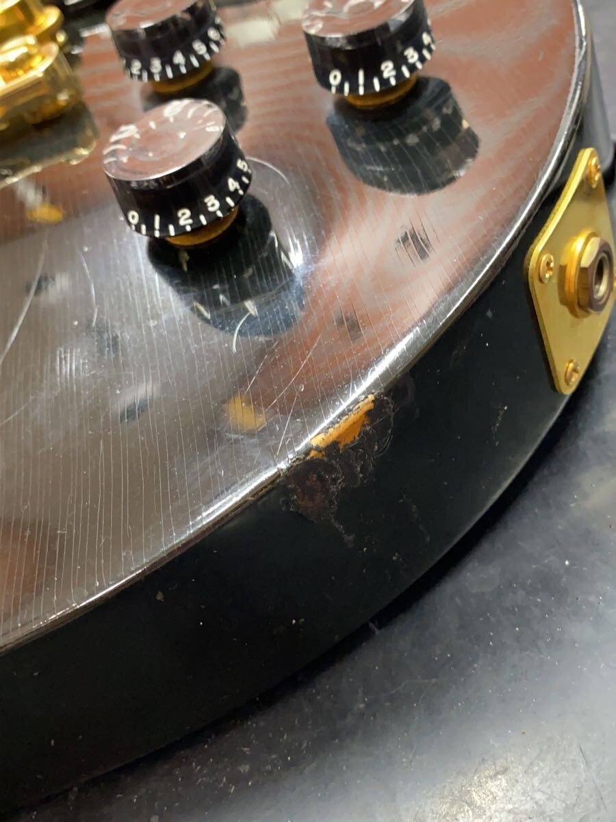 | 【商品説明】 バインディングやインレイなどの装飾を排したシンプルなルックスのレスポールスタジオ。PUの出力がスタンダードに比べてやや高くなっています。塗装溶けがありますが、全体にクラックがあり渋いルックスです。 【付属品】 純正ギグケース 【状態】 ネックストレート ロッド左右余裕有 塗装溶け有 Les Paul |