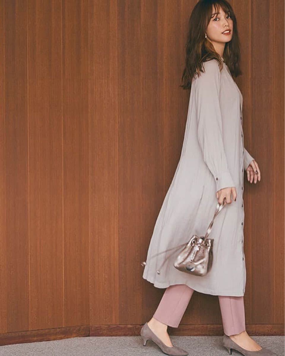 品のあるくすみブルーは暗くなりがちな秋冬の差し色にぴったり。