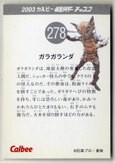 | ◆防水対策 厚紙補強 カルビー 仮面ライダーチップスカード(2003 復刻版) 278番 ガラガランダ トレカ 即決 | |