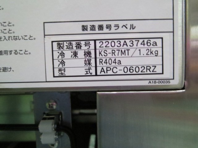 値下げ アリガ 冷蔵ショーケース APC-0602RZ 三相200V+単相100V LED照明 2022年製 中古