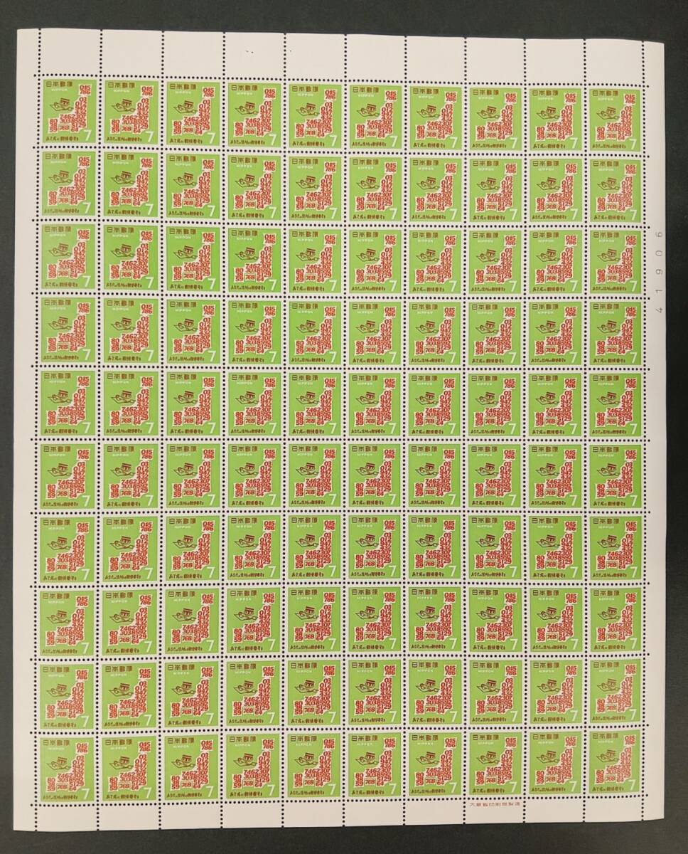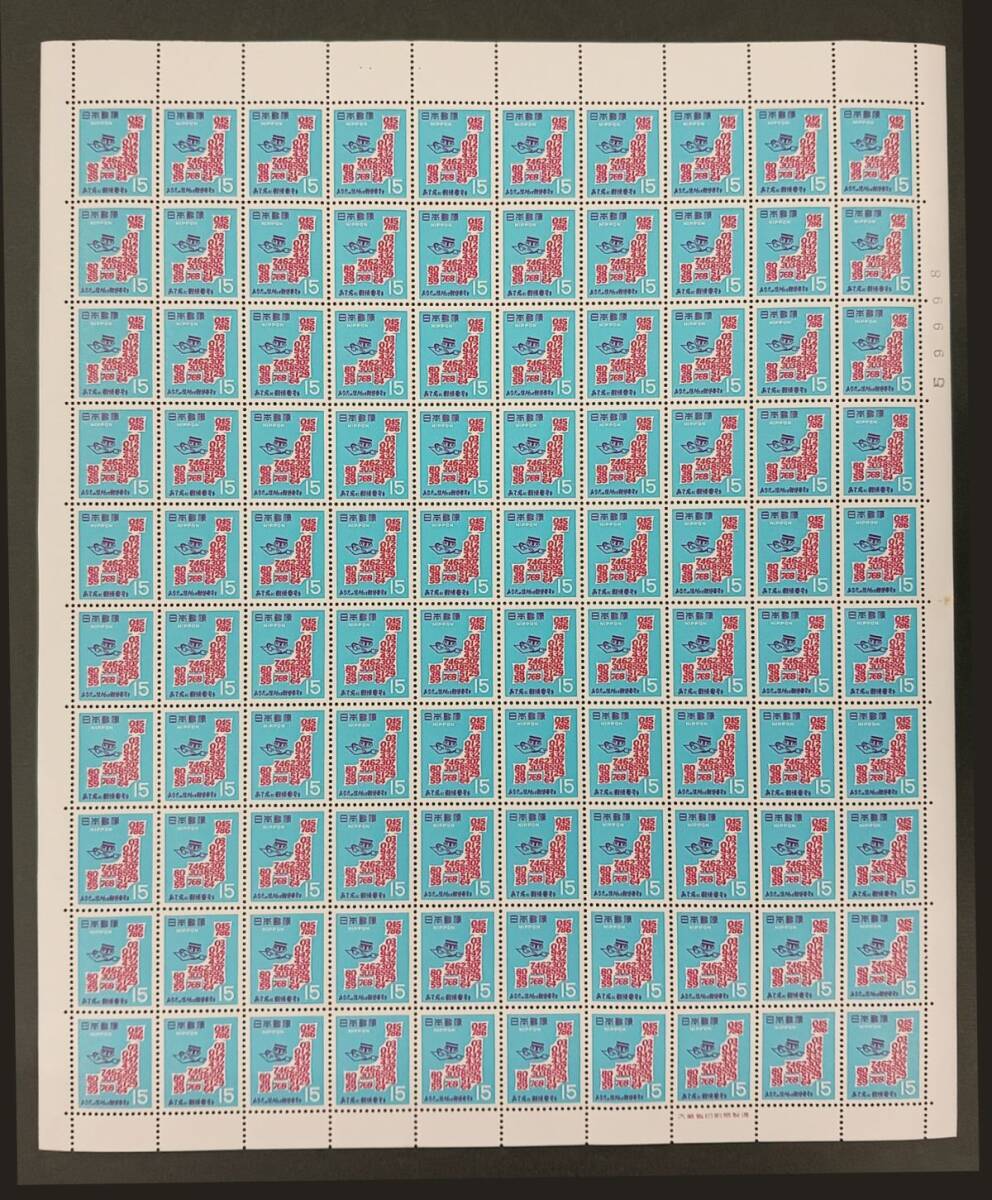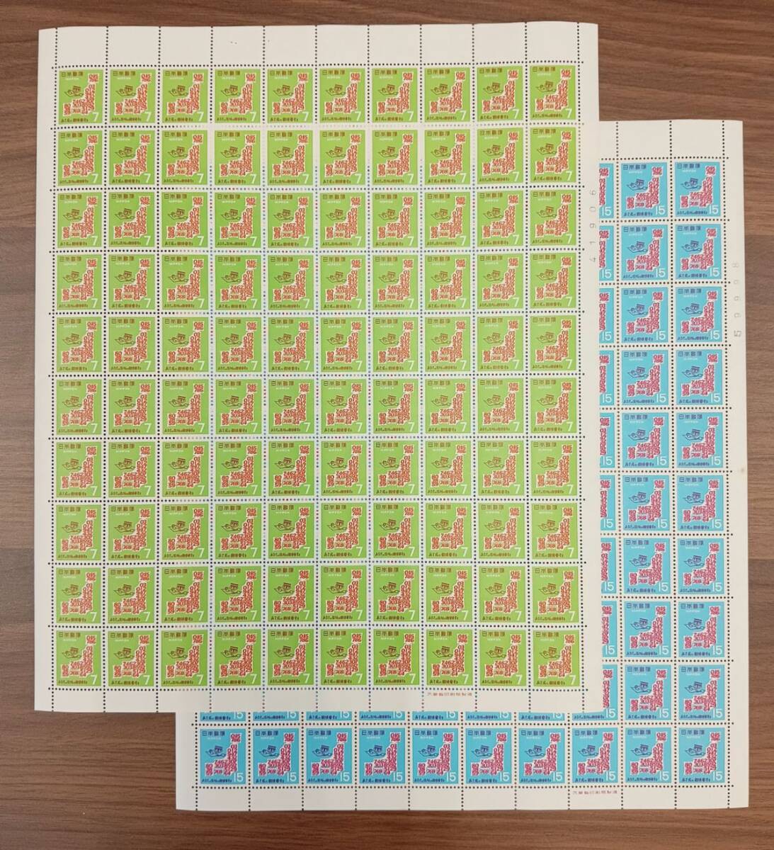 日本切手 1968年「郵便番号」7円、15円 100面シート2種 額面2200 未使用 少シミ