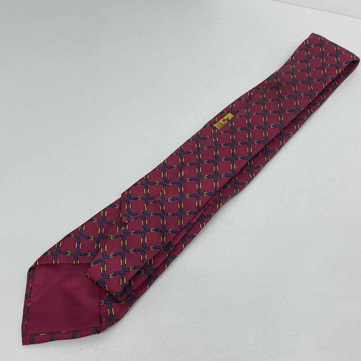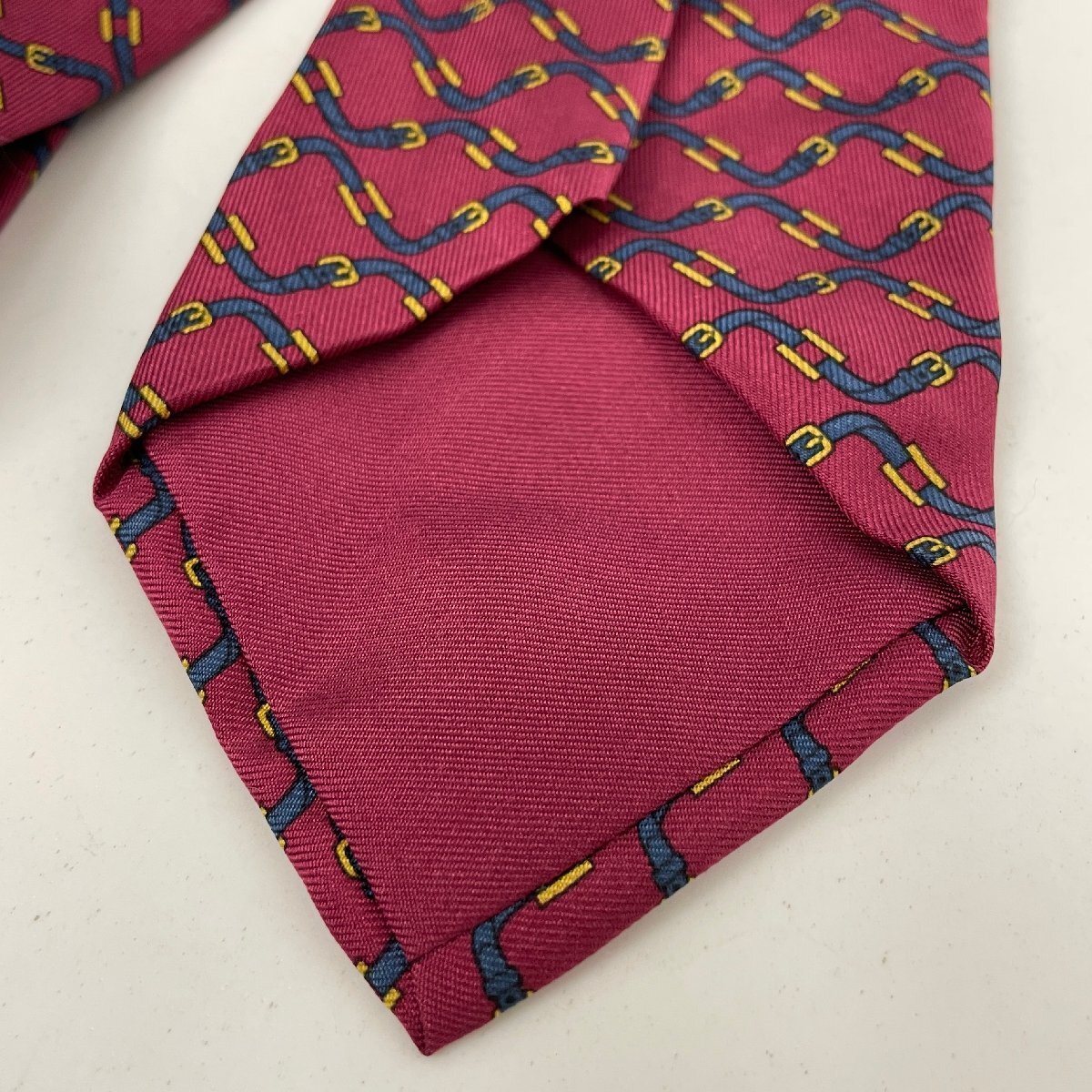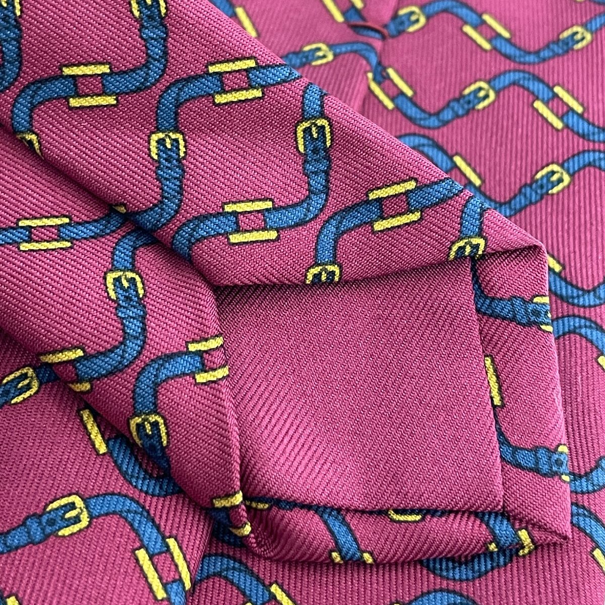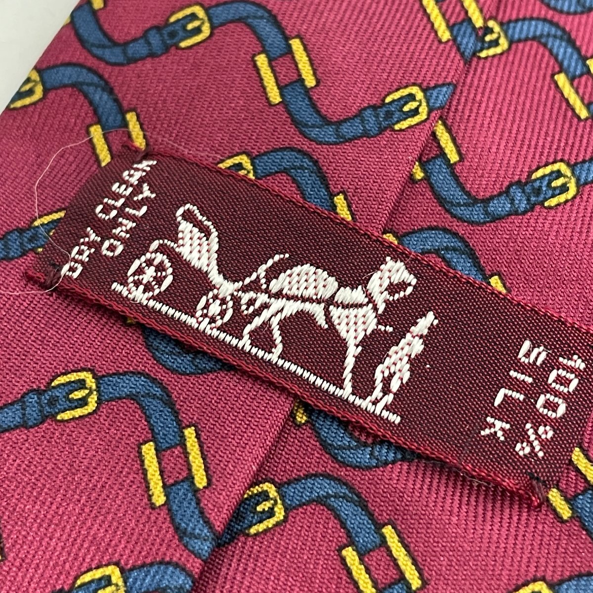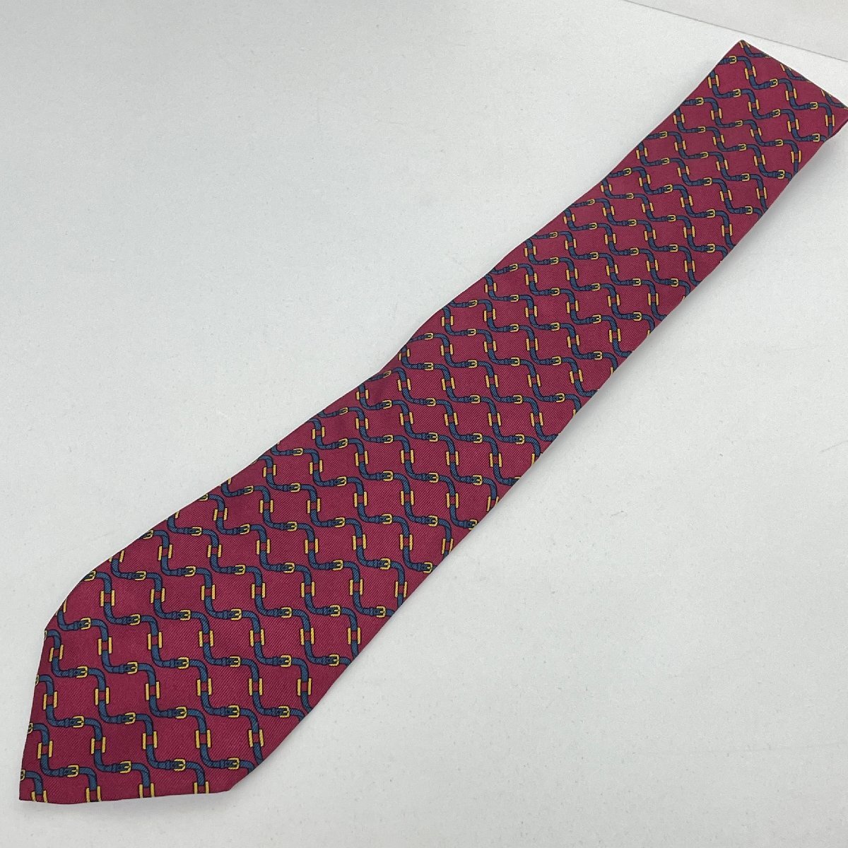 Herms HERMES エルメス ネクタイ レッド 馬具柄 バックル柄 赤 ネイビー 紺 フランス製 シルク ハイブランド ブランド ファッション