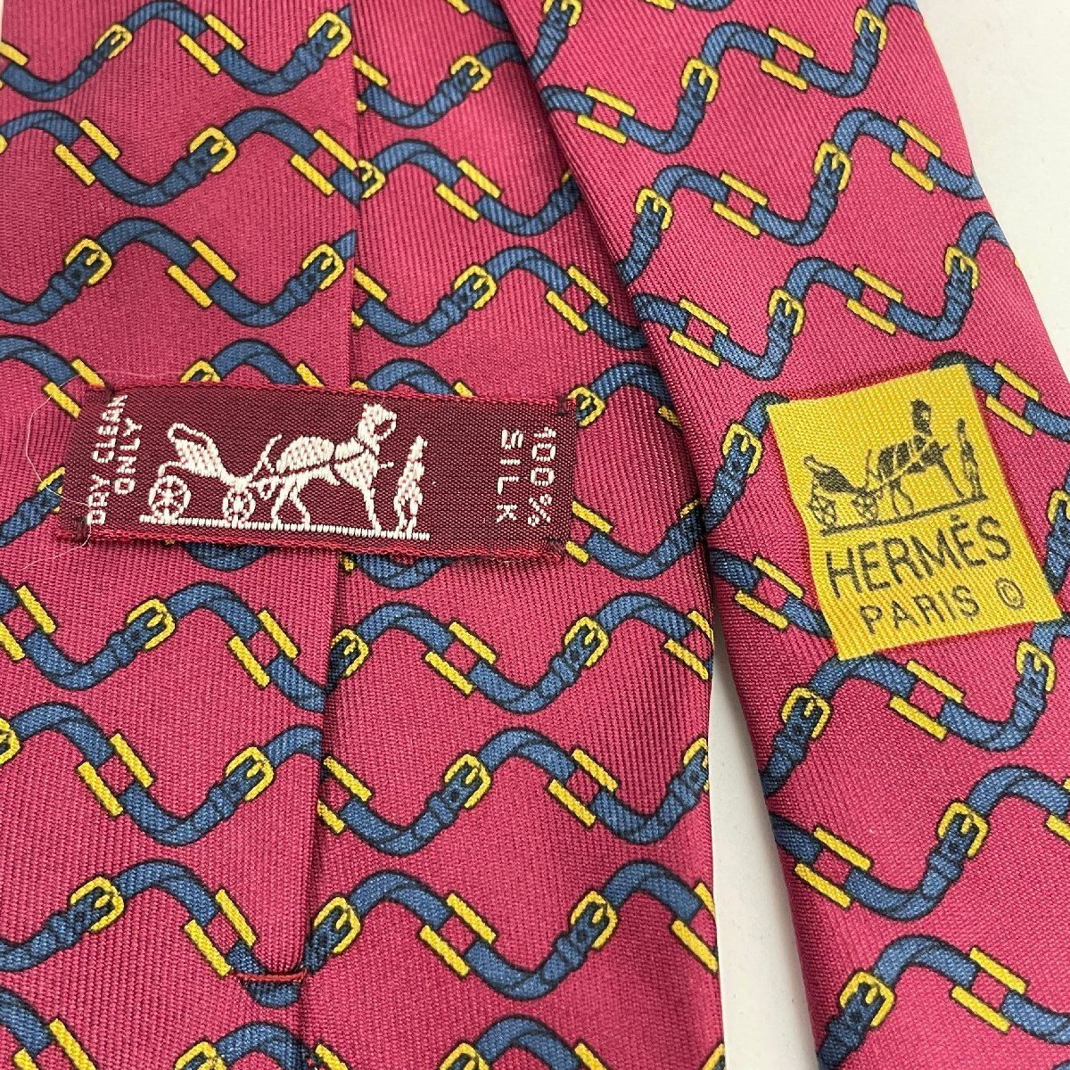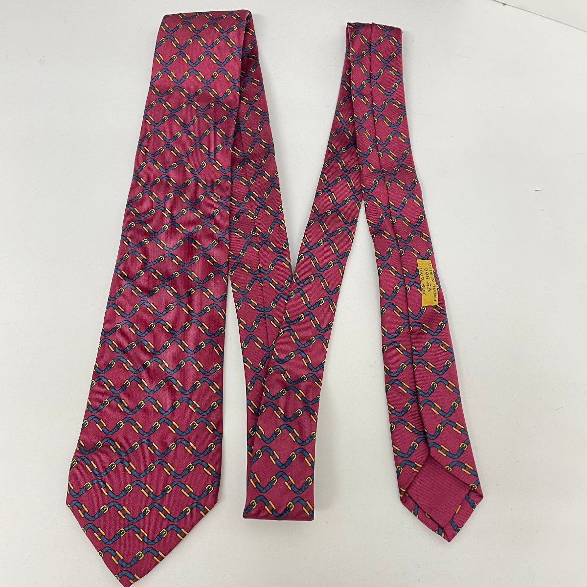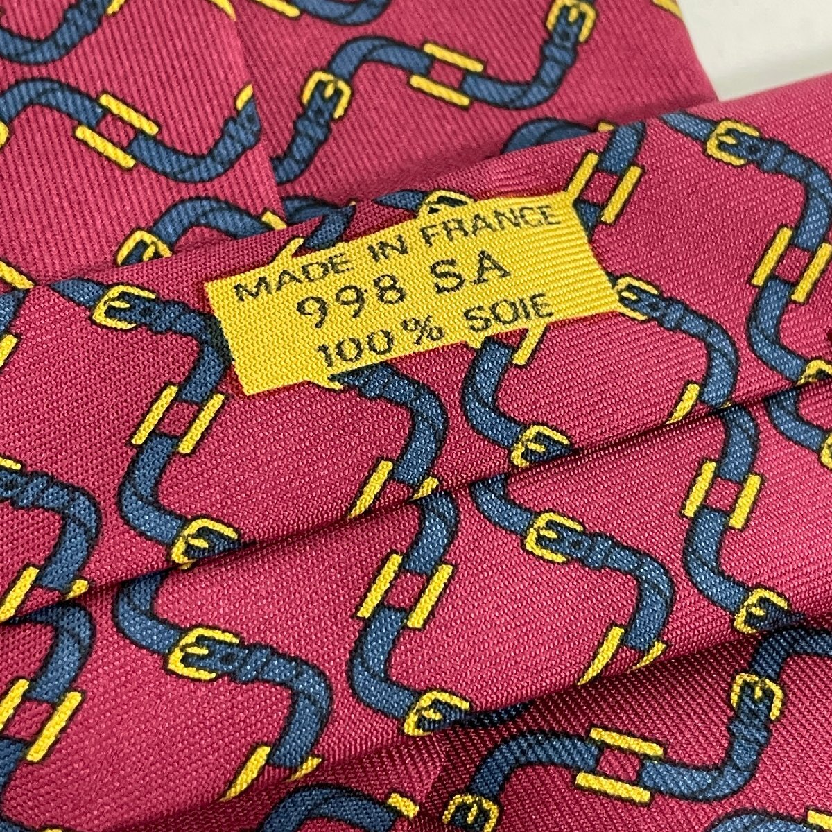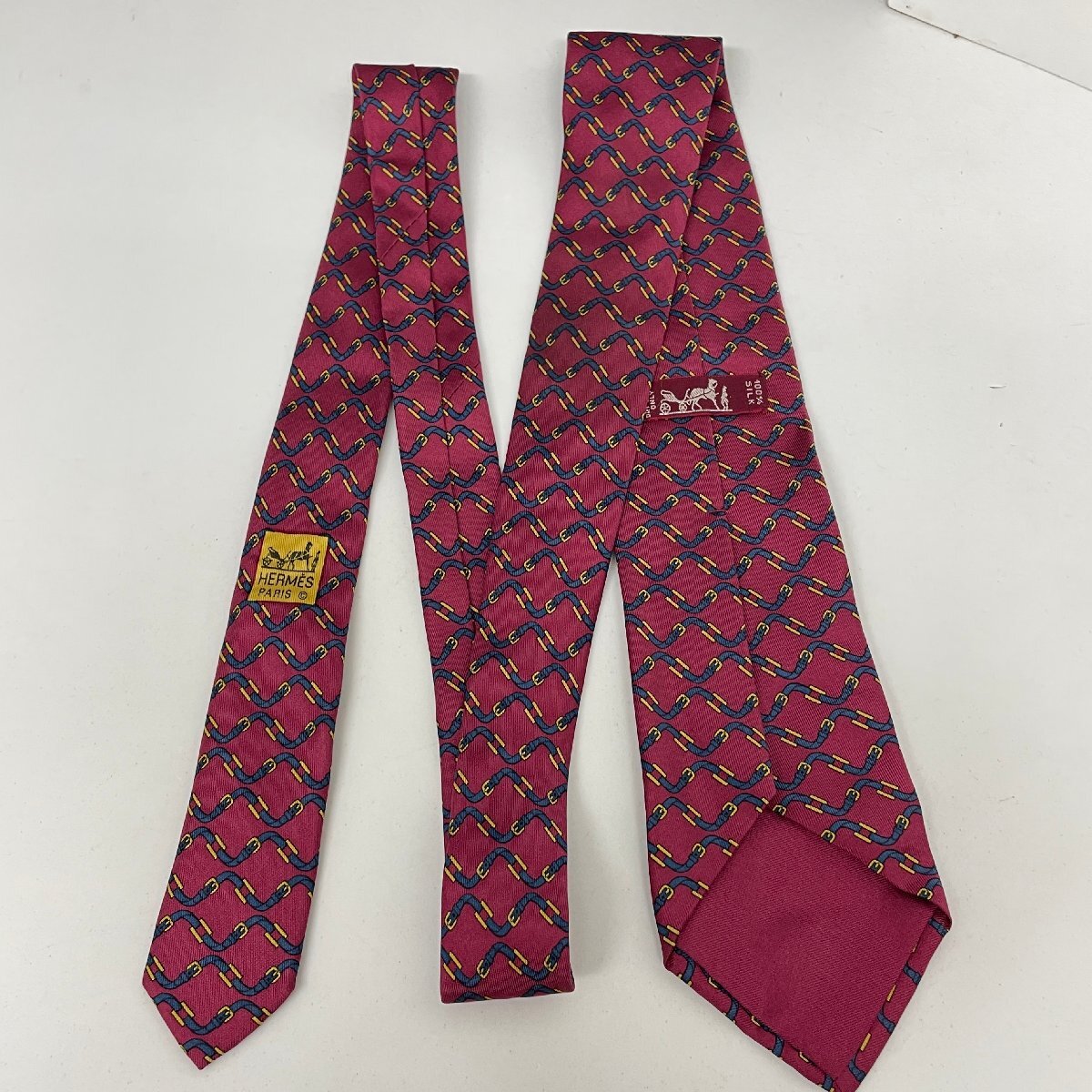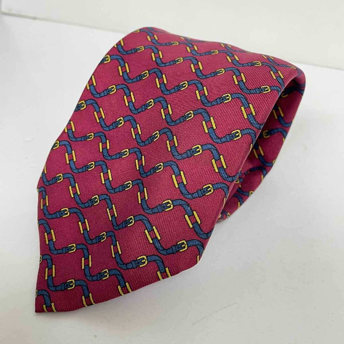 Herms HERMES エルメス ネクタイ レッド 馬具柄 バックル柄 赤 ネイビー 紺 フランス製 シルク ハイブランド ブランド ファッション