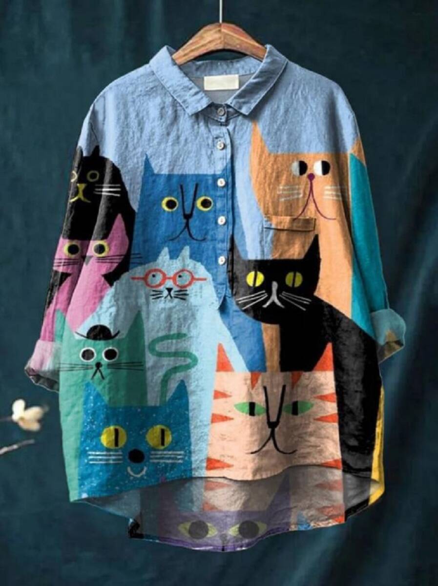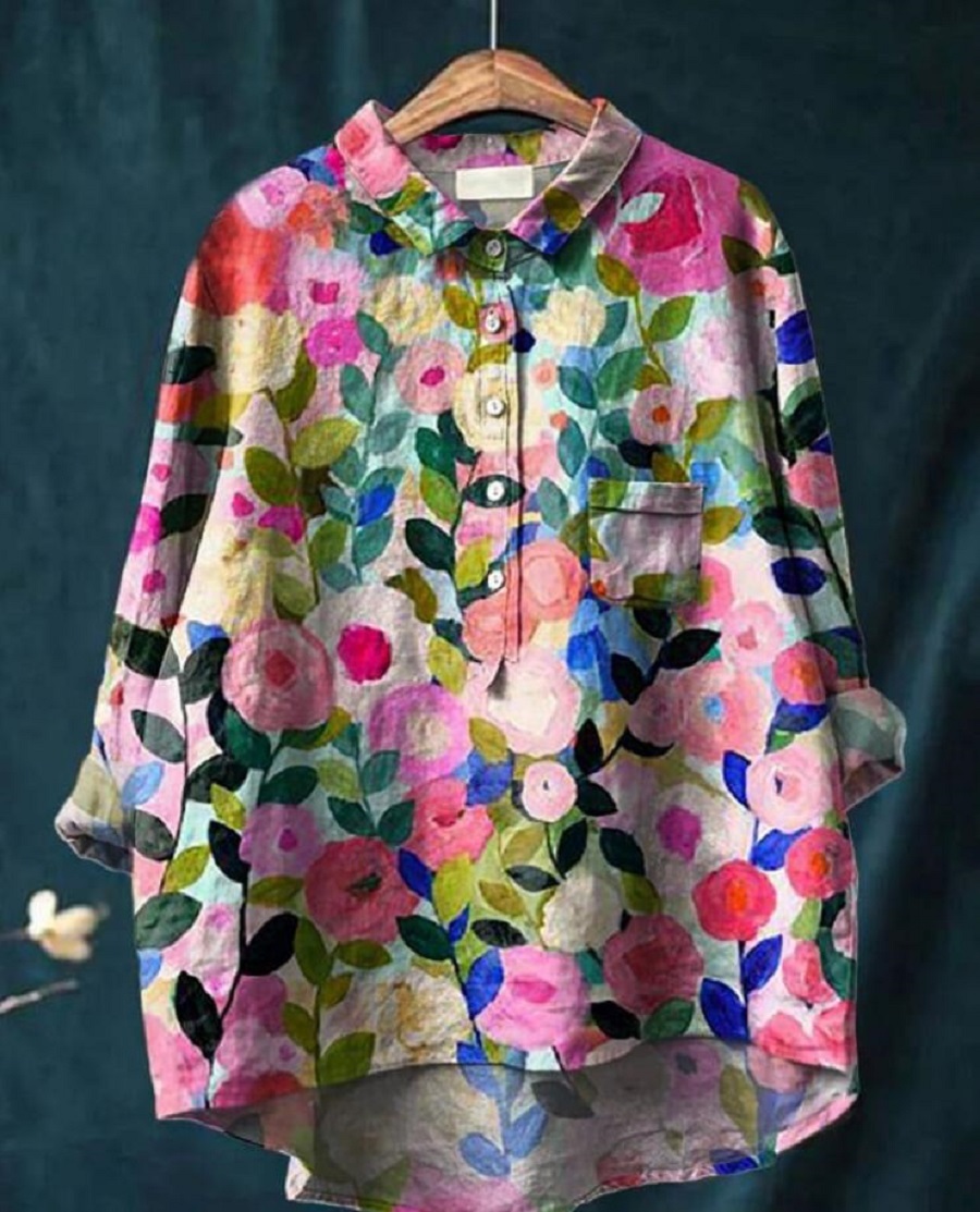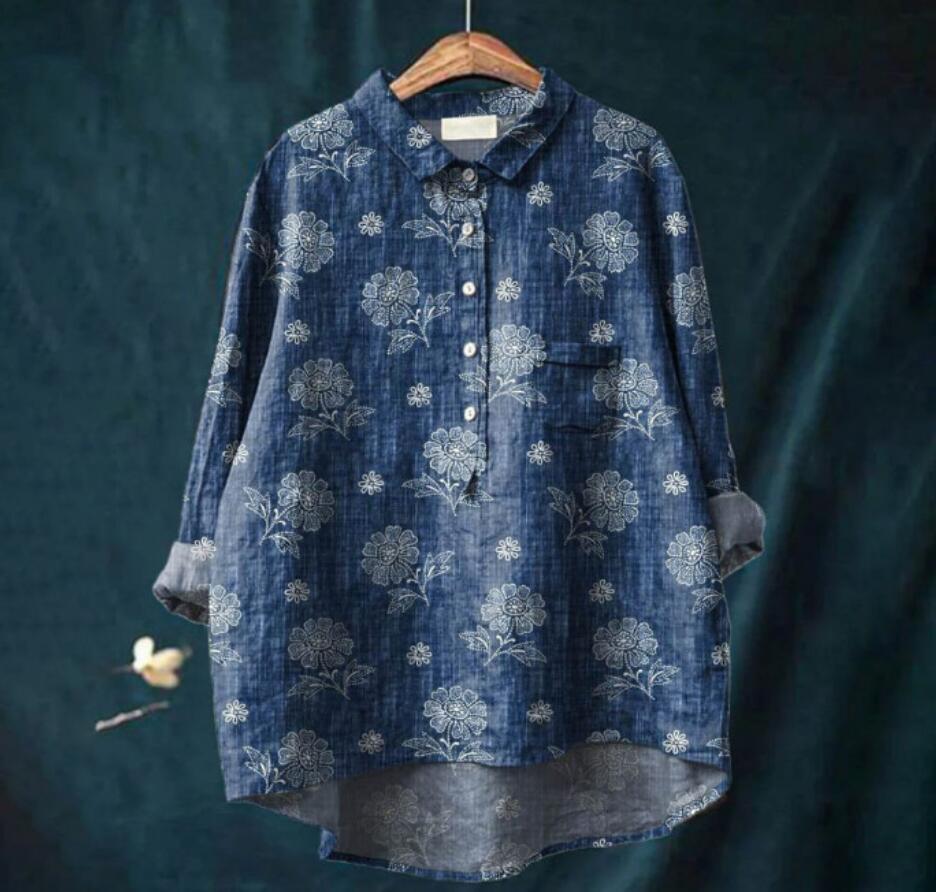 同梱1万円送料無料■シャツ ブラウス 着痩せ チュニックシャツ 綿麻 プリント柄 トップス レディース 長 袖 体型カバー チュニック