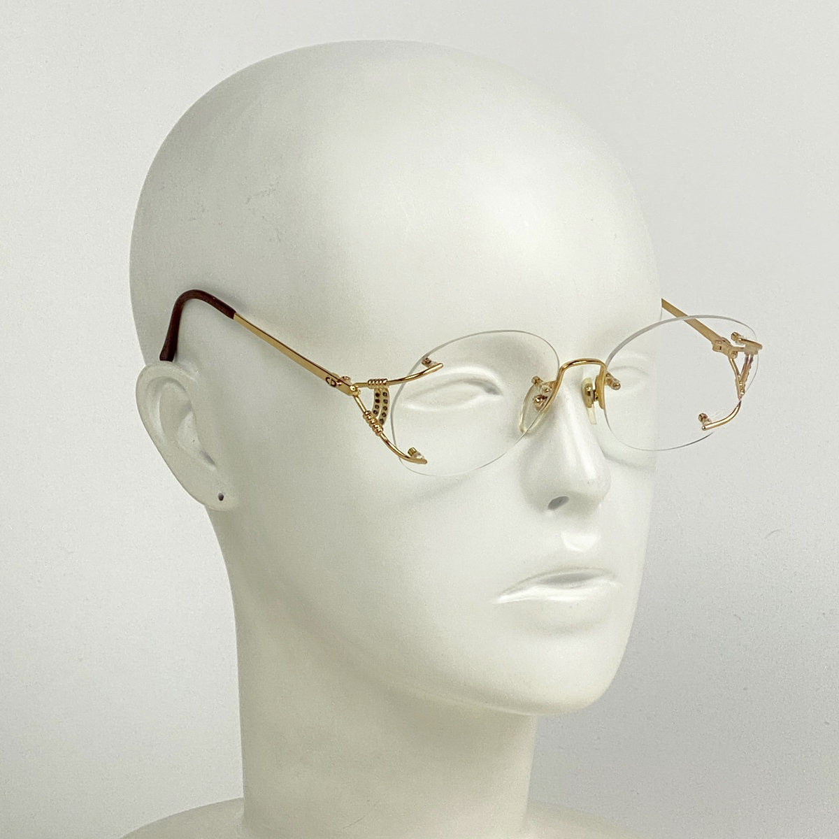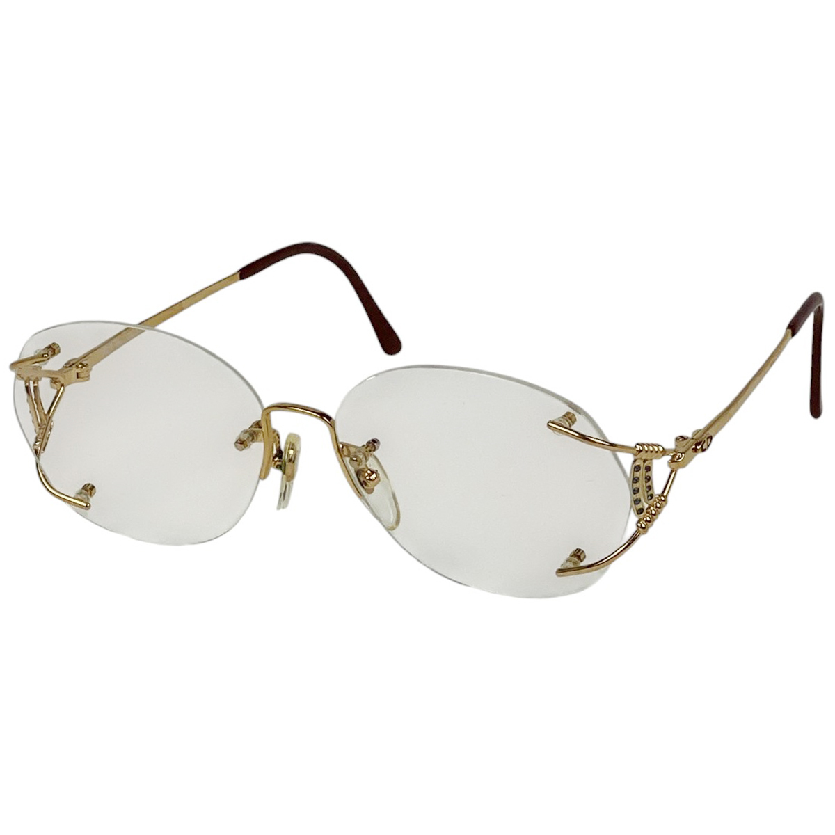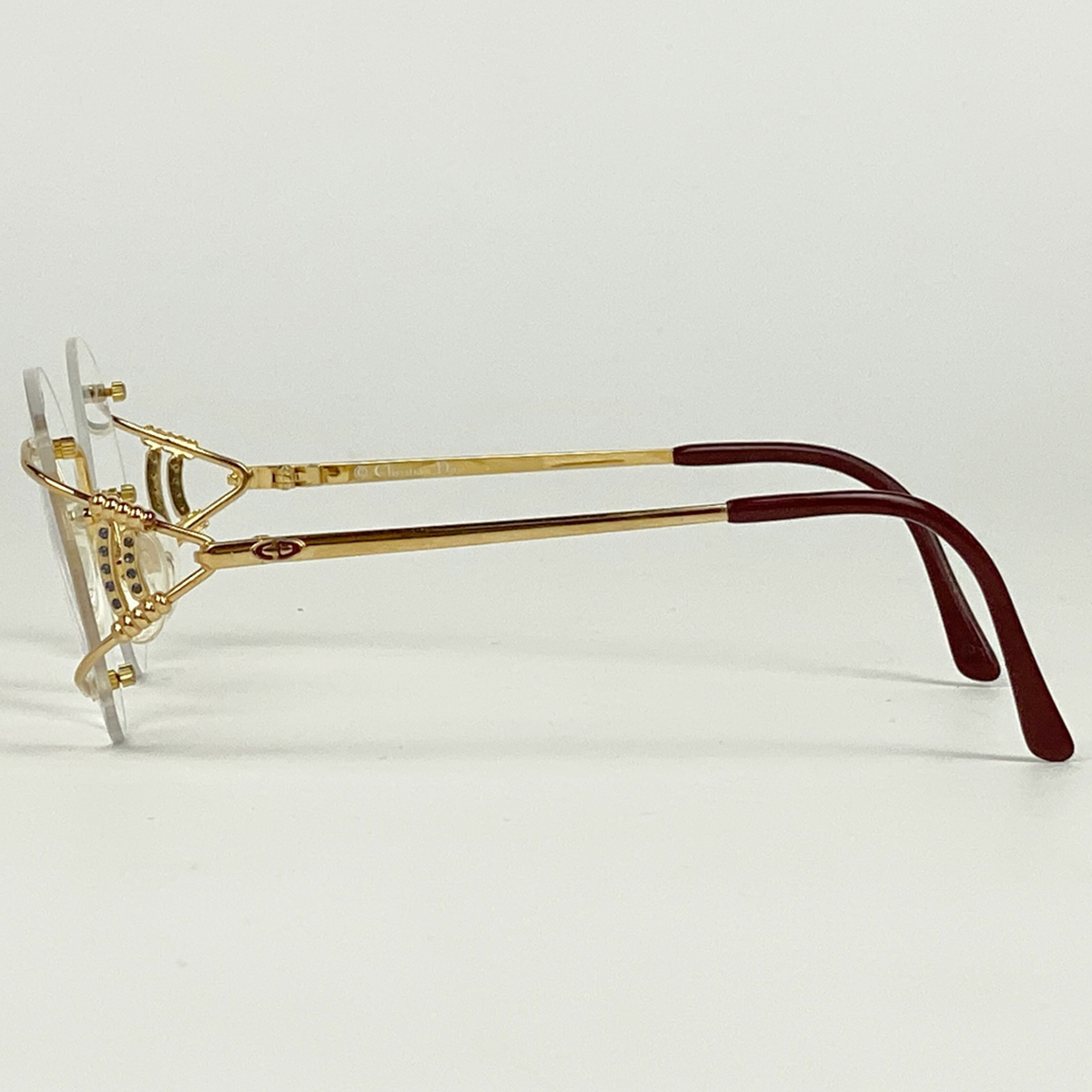 | クリスチャンディオール Christian Dior ロゴ ラインストーン メガネ ツーポイント 眼鏡 GP プラスチック ゴールド レディース 【中古】 |