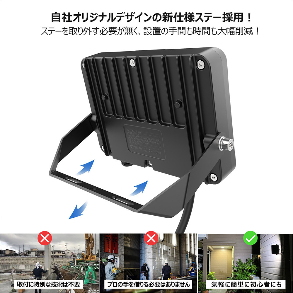 コード長さ | 全長約2m | 灯体材質 | ADC12アルミダイカスト + 強化ガラス | セット内容 | 投光器本体、保証書、取扱説明書 | 注意事項 | ※非常に明るいので直視は危険です! ※製品の改善・改良などのため、予告なく製品の仕様変更を行うことがありますので、ご了承ください。 ※大量注文の場合は割り引きの見積書を提供致します!当店にメールの問い合わせ大歓迎!! |