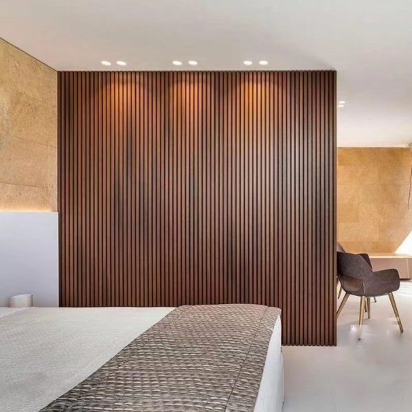 ホテル、商業施設等で利用されている高級感のある木目調パネルです。