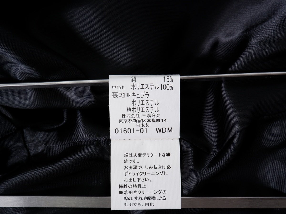 ポリエステル85%シルク15% 中綿ポリエステル100% 裏地キュプラ・ポリエステル 袖ポリエステル ライナー・キュプラ50%ポリエステル50% 衿見返しポリエステル85%シルク15% 中綿ポリエステル100% 裏地キュプラ・ポリエステル |