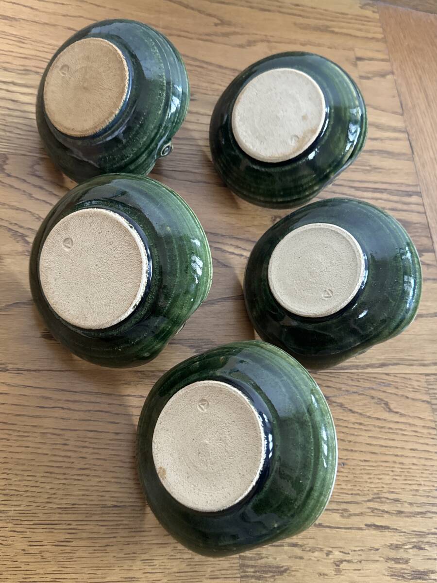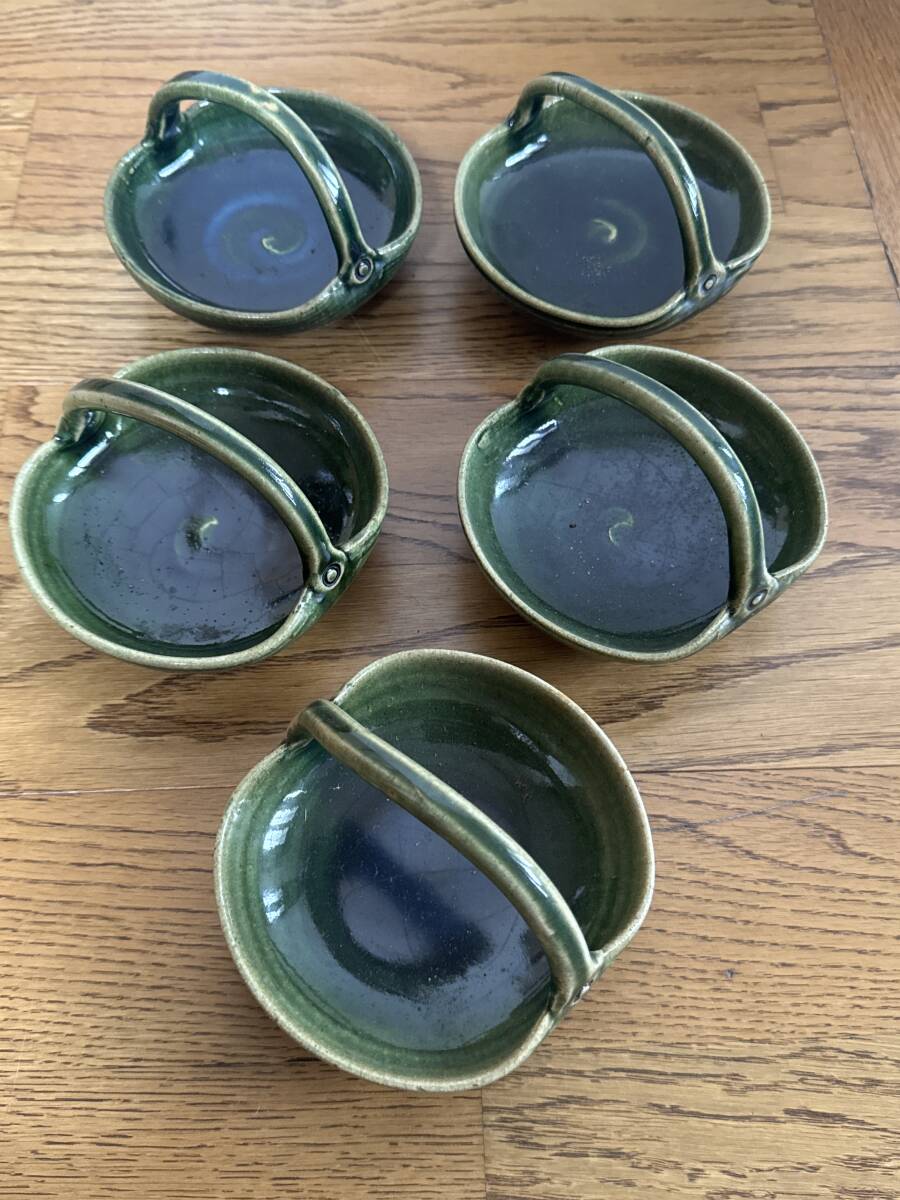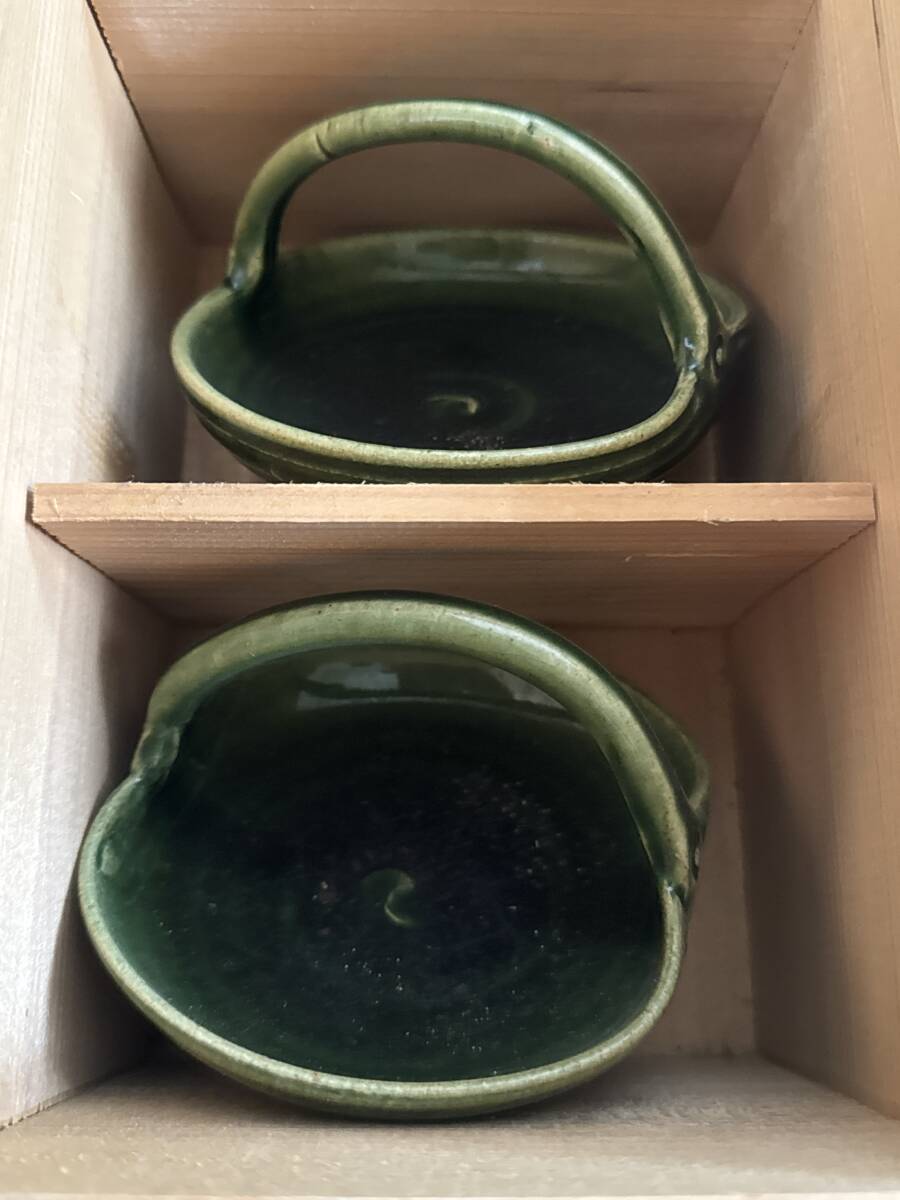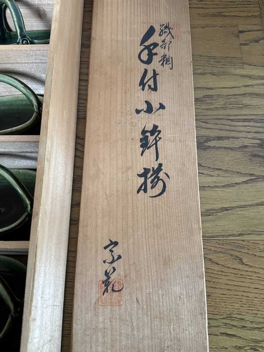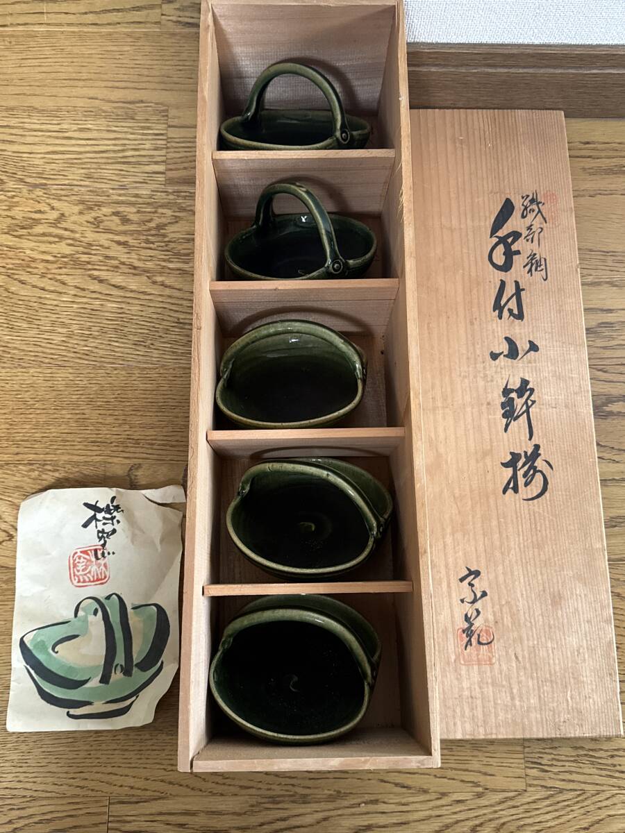 ◆織部焼? 小鉢 手付き鉢 盛り鉢 陶器 木箱入り 5個セット