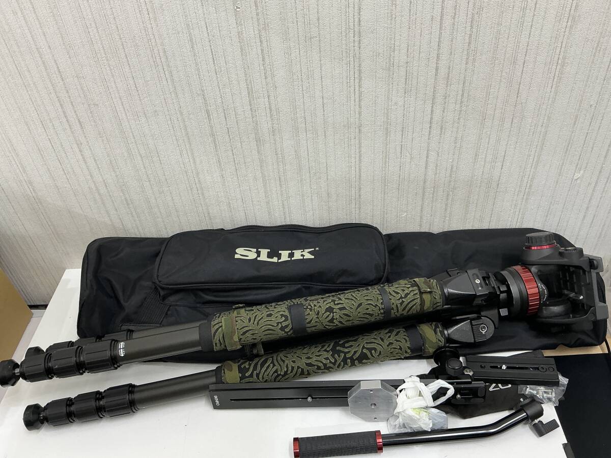 SLIK GRAND PRO CF-4 三脚/Manfrotto MVH502AH PRO ベース スリック大型三脚 中古品