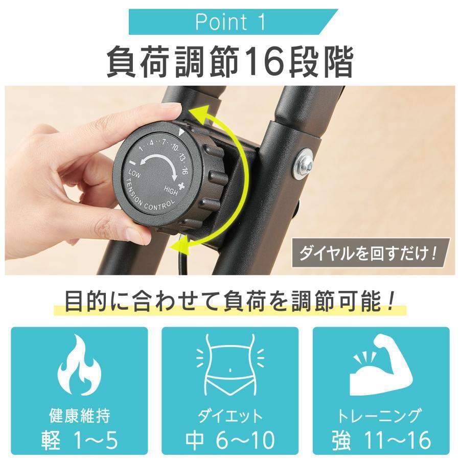 トレーニングバイク 心拍センサー サドル高さ調節 負荷調節 16段階 耐荷重120kg 走行距離 時間 カロリー 表示パネル スマホホルダー 家庭用 室内 自宅用 爆買